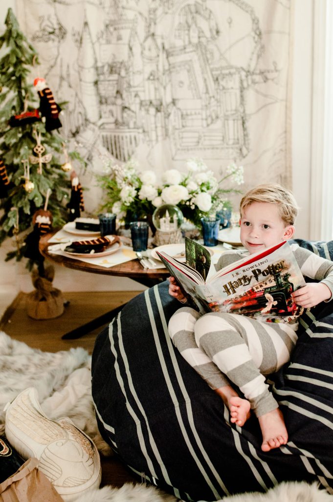Well when our friends at Pottery Barn Kids told me they had a new Harry Potter collection and wanted me to throw a Harry Potter party I said YES! There’s something about the holiday season that makes me want to sit and snuggle and watch all the Harry Potter movies, like in a row, all day long. But I settled for this little party, my favorite little people and a little bit of the movies – just the first one for the kiddos!