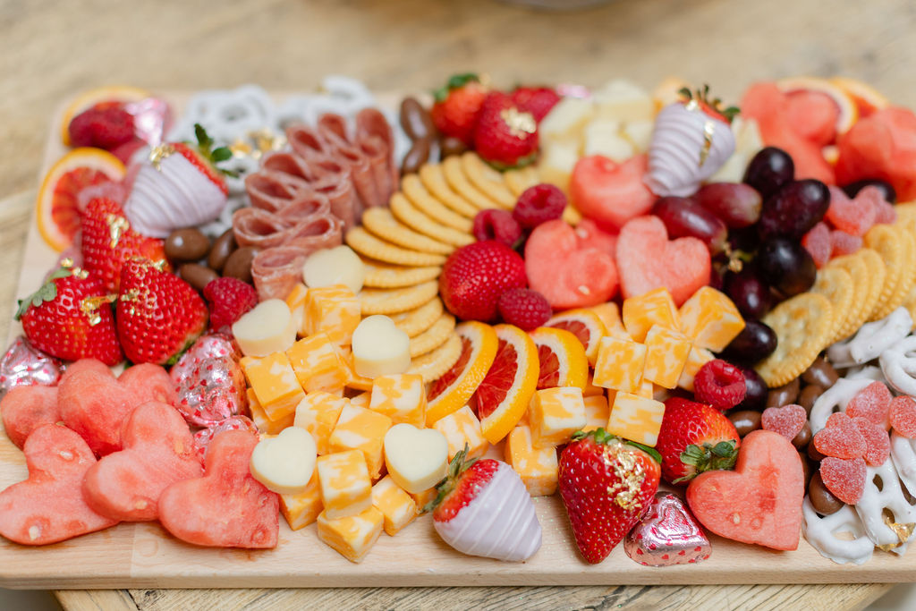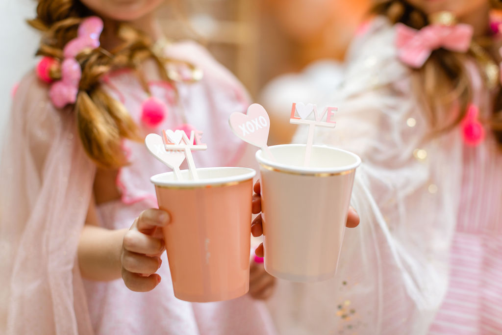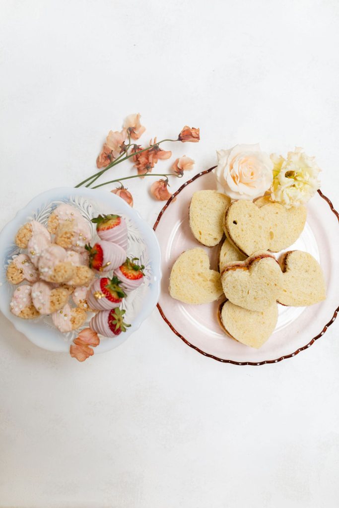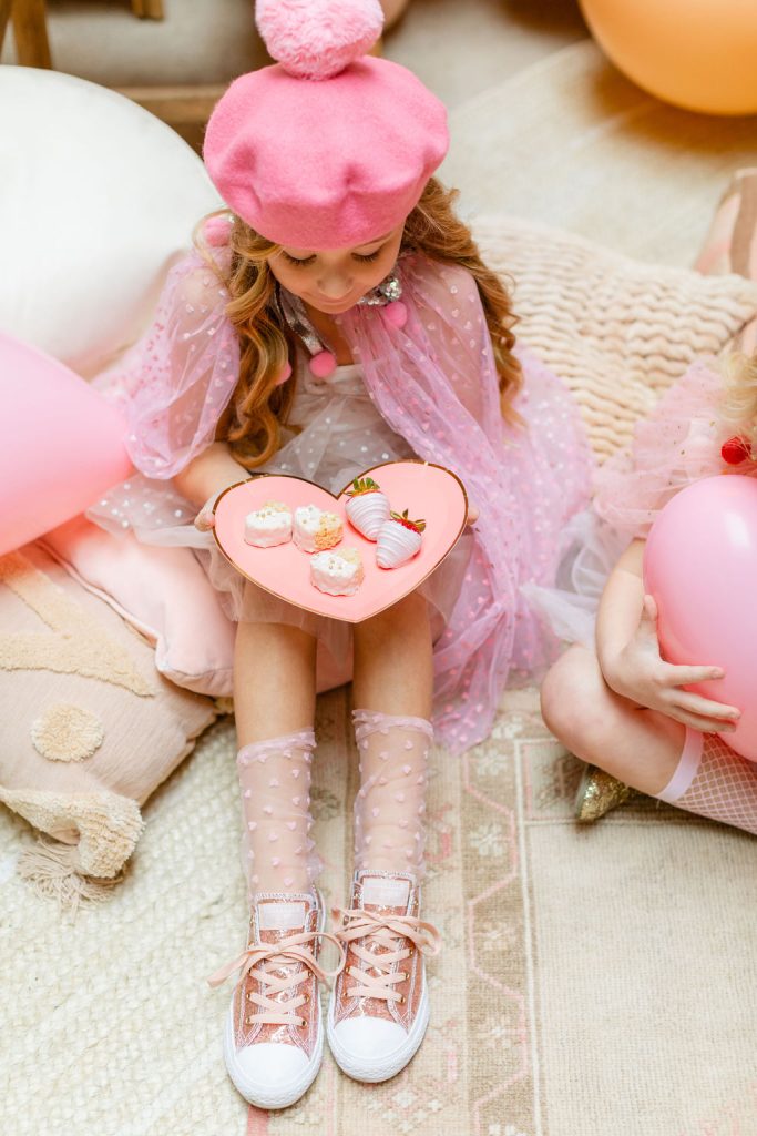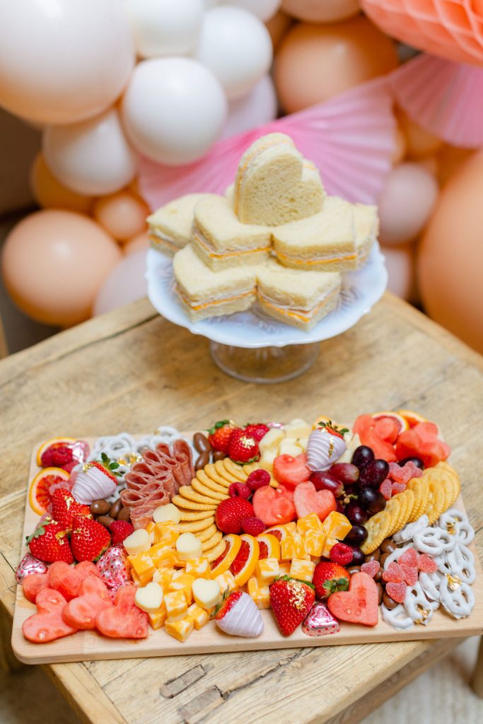 Did you notice the yummy bites in the background?! Our friends at Taylor Made Catering have helped us out with quite a bit of kid parties. They are the masters at making kid’s food yummy and pretty! They even do sparkle pb&j sandwiches – need I say more?! Check out their adorable and delicious Valentine’s Day spread…