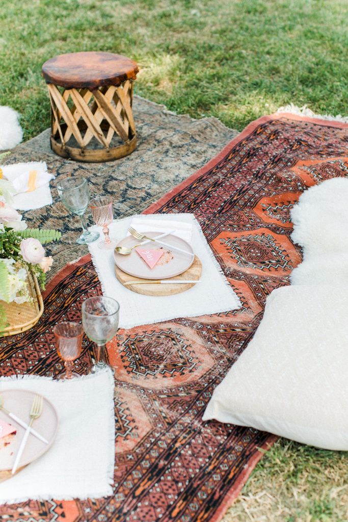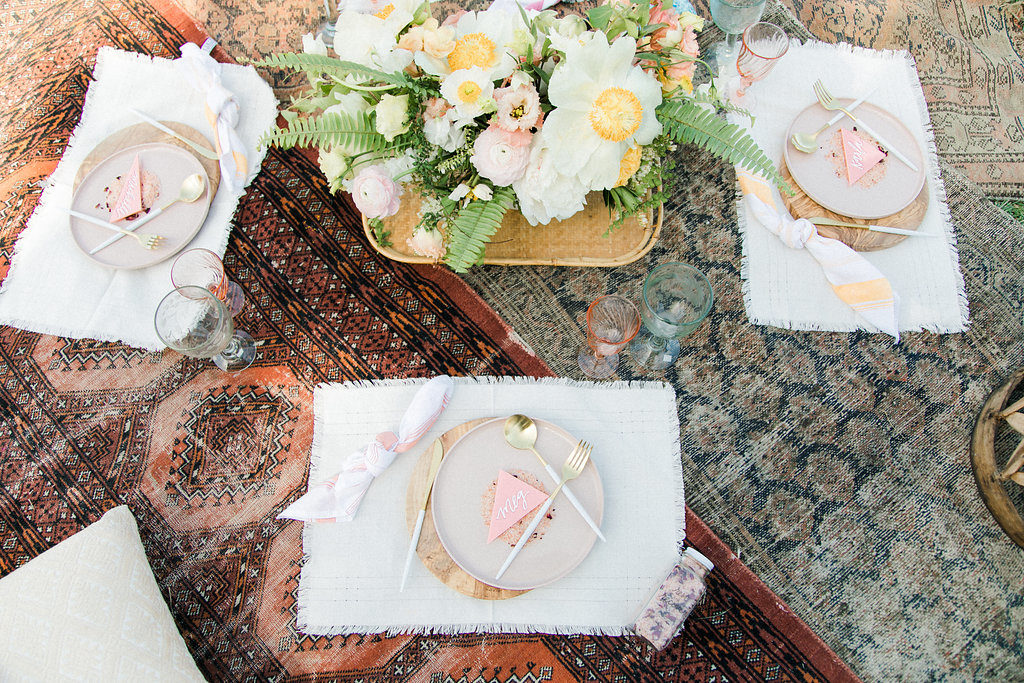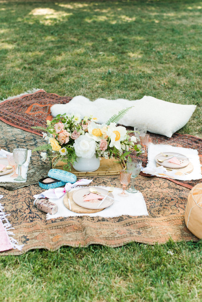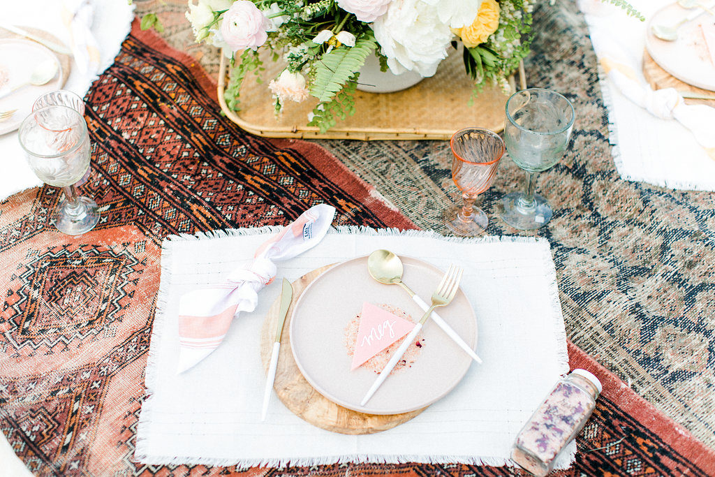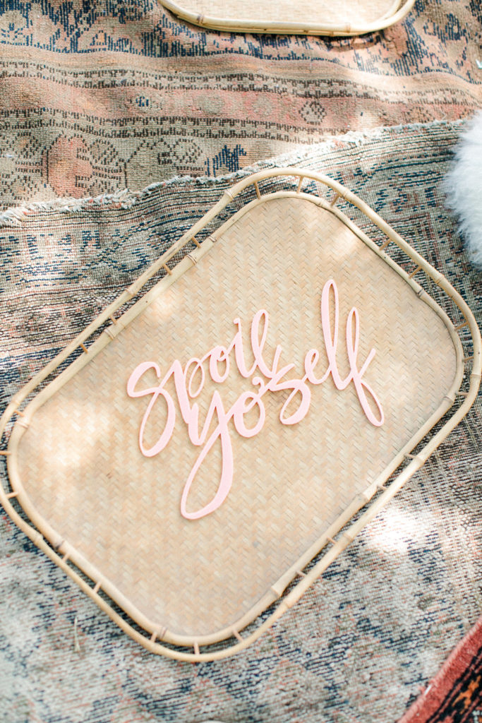 This picnic was all about relaxing and spoiling yourself. I took The Little Market’s Rose Soaking Salt and placed a little pile on each plate for the guest’s name to sit on. Each guest went home with their own bottle, can’t let the day go away without a relaxing bath!