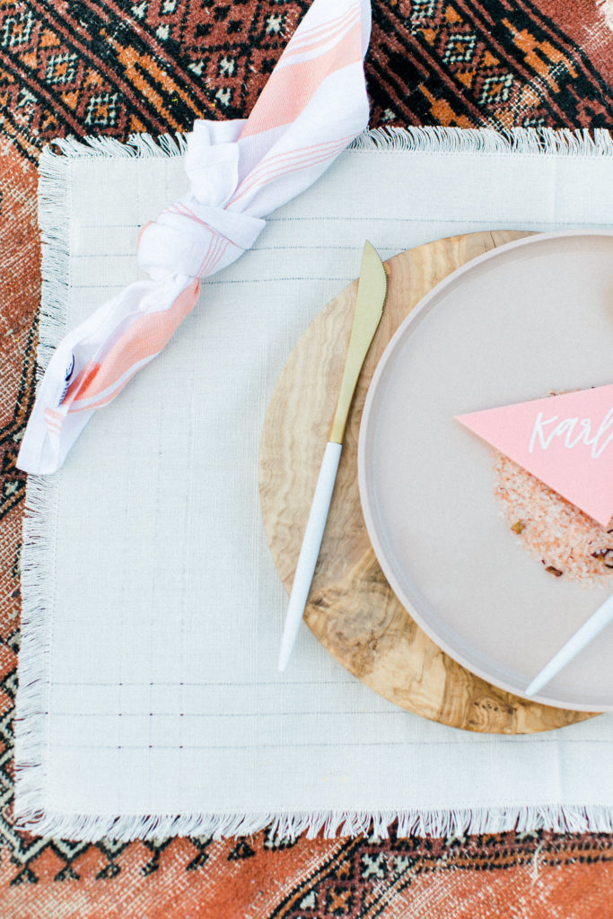 Our pal, the one and the only mama of the year, Meghann Miniello created these fun triangle acrylics for each guest’s place setting. You know what I love about acrylic, is you can write on it and then wash it off after and reuse for another event. Create timeless shapes and colors and keep on hand for any type of holiday or even when you are just having some pals over. A fun detail touch that will certainly go far in your guest’s eyes.