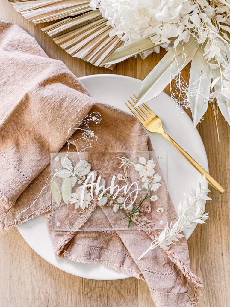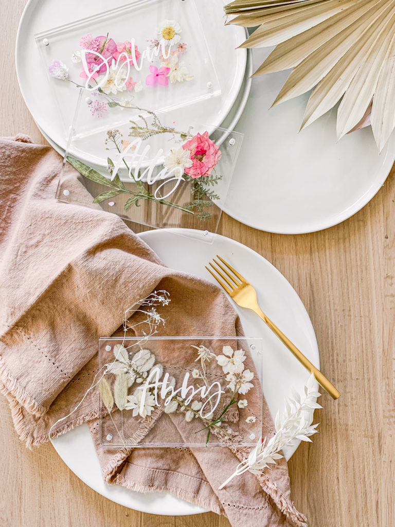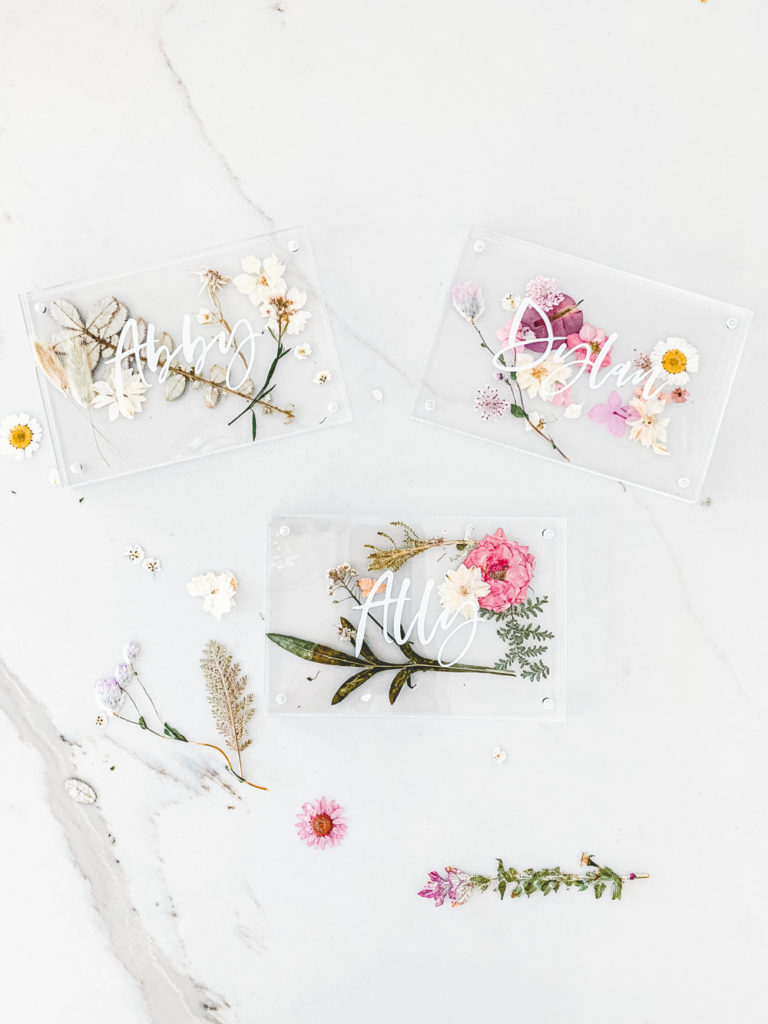 With the holidays coming up, do you have so many ideas you want to do? I know this happens to me, especially around now. With seasonal changes come ideas for everything from decorating the house, seasonal food + cocktails, adding details into the kid’s rooms. The list is endless! I also have a list going on things I would love to do. With a season upon us, I knew this was a great time to try out this pressed flower DIY. I love this idea for fall gatherings as it includes dried flowers and all in natural colors. Plus, this is a multitasker DIY! You can use this as escort cards for a dinner party, or you can even use it in the house as decor. I did one for my daughter, and she has it on her desk right now. All you need is a couple of items! Let’s get to this!