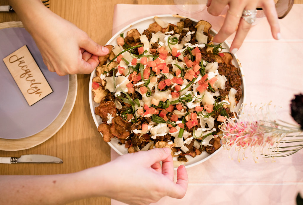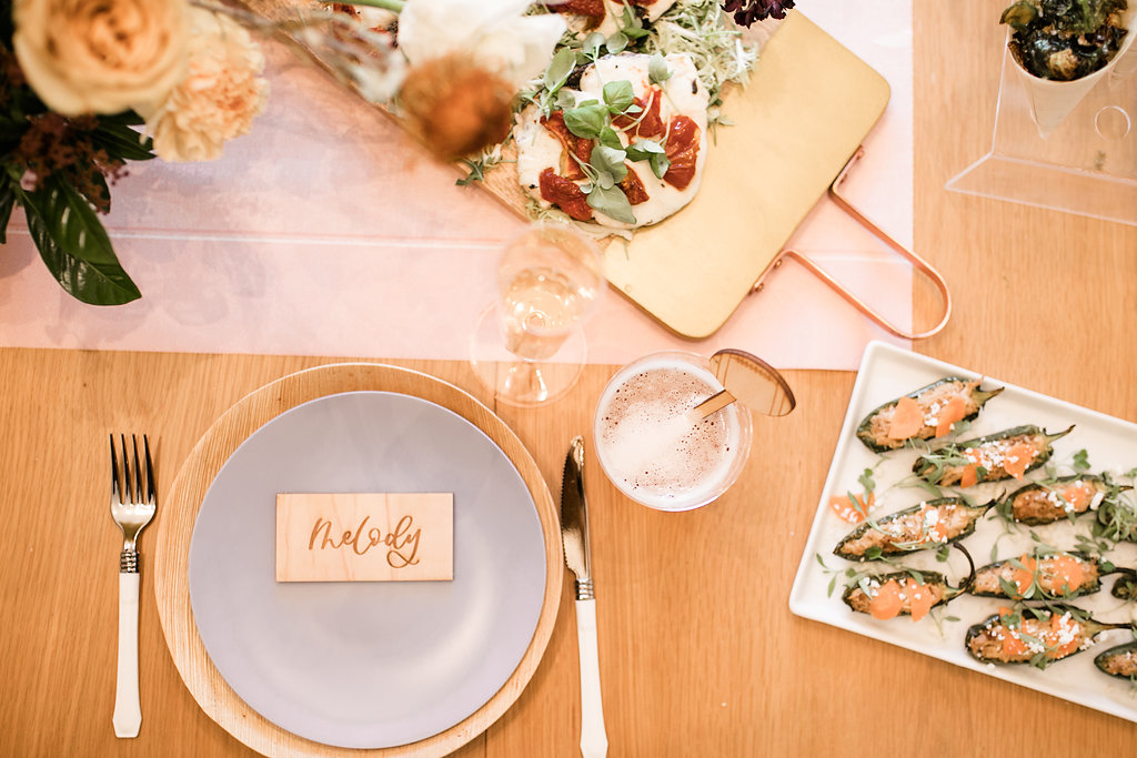 As far as tabletop, when I have an event like this I try to keep things as easy as possible on myself.  Lately I’ve been using the amazing L’Entramise, a gorgeous single use tabletop line.  Everything they have is great quality and also looks amazing.  They have multiple options so you can customize your table for any event.  I especially love their glassware options, good disposable glassware is so hard to find!  And it’s so easy to clean up after, just toss everything!
