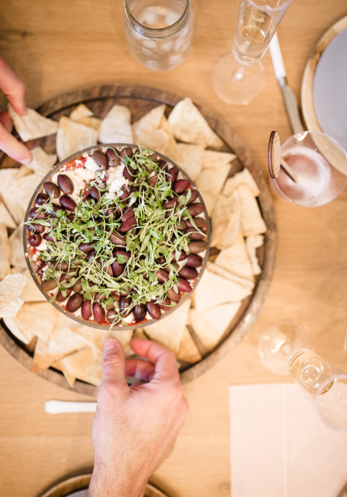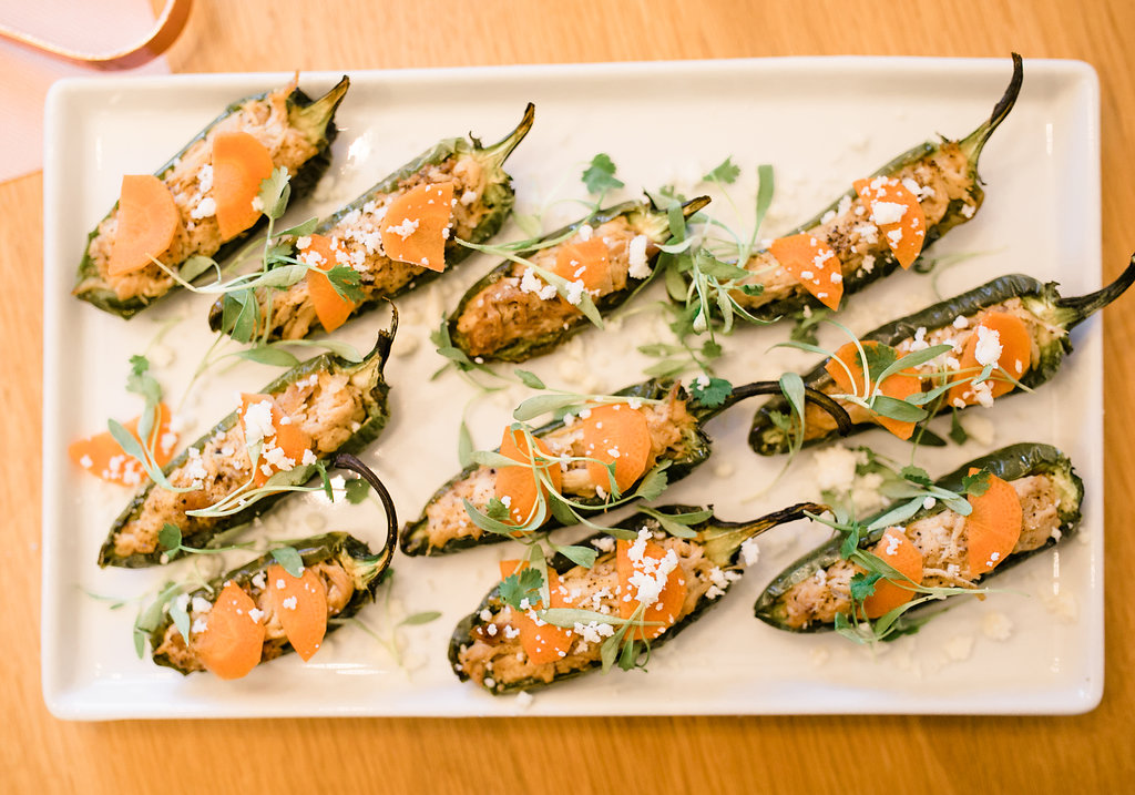 The first thing I think of for the Super Bowl is the food!!  I teamed up with our favorite local caterers Colette’s Catering and asked them to make some fun party food with a healthy edge… They delivered and everything was delicious!  We munched on things like a 7 layer Mediterranean dip, Brussel sprout chips, and chicken stuffed jalapeƱo poppers.  It was all so tasty and we didn’t feel guilty afterwards!  It was seriously perfect!