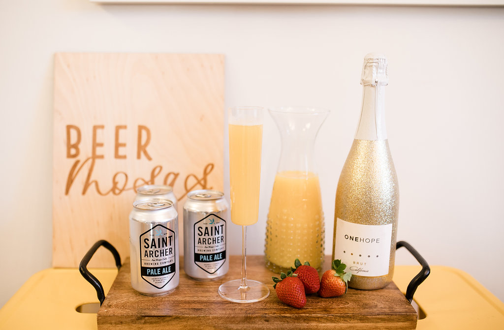 The next thing I think about are drinks of course!!  We had beer and champagne out because well, you have to! One Hope Wine always has the fun shimmer bottles we love so much.  But we also made a fun signature cocktail – Beermosas, and let’s say they were a hit!!