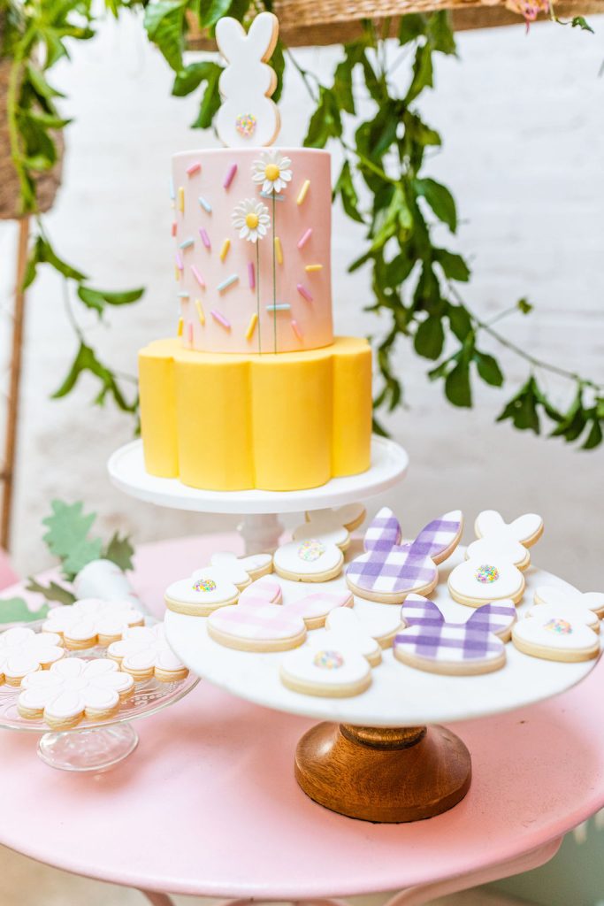 As if all that delicious food wasn’t enough, but you know we had to have dessert!! The Sugar Box OC brought one of my favorite cakes to date along with the prettiest little sugar cookies. How fun is the daisy shaped cake with all of our sweet spring pastel tones?! Obsessed!