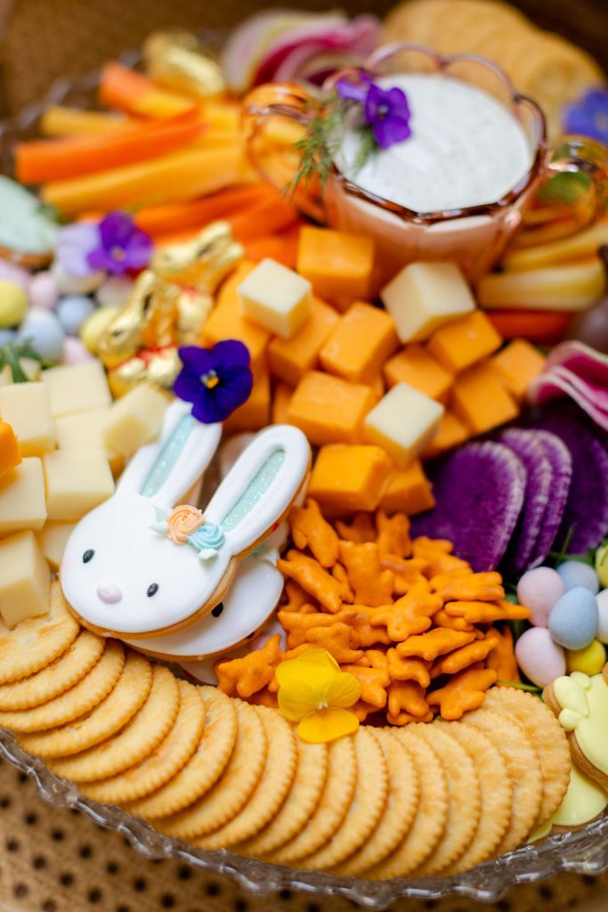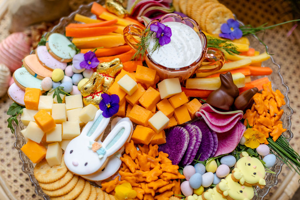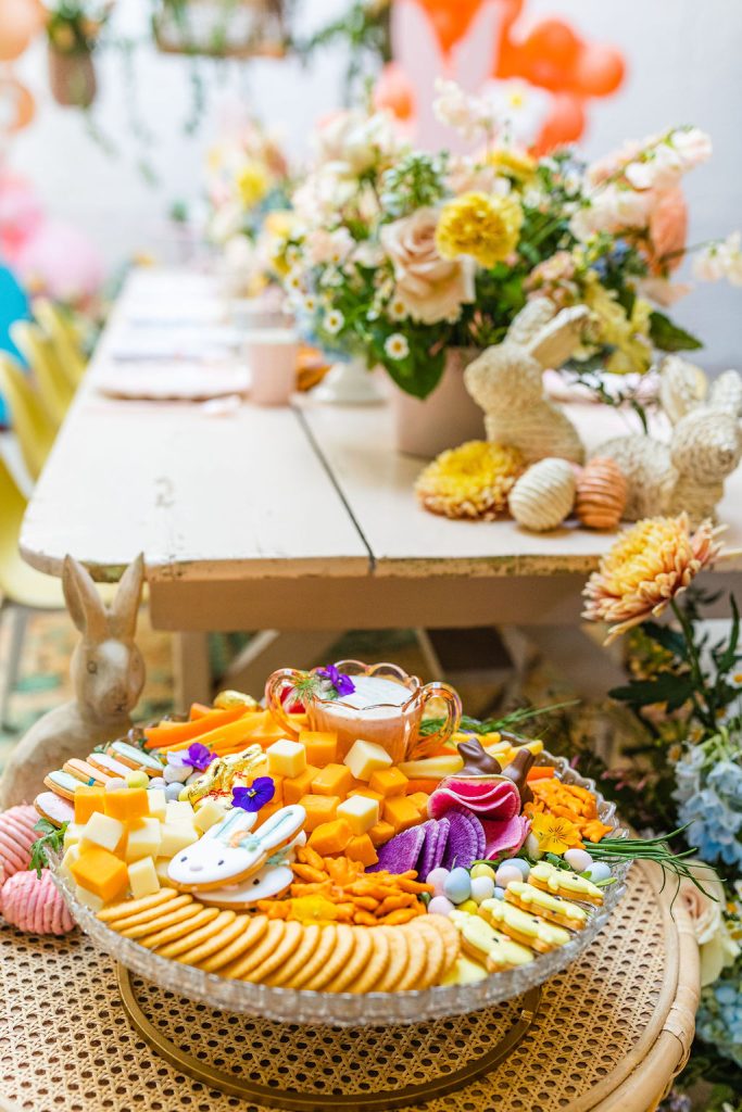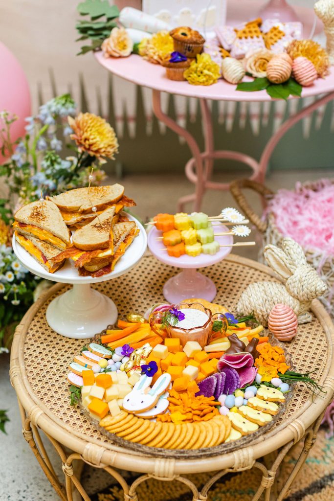 One of the stars of this shoot is definitely the food!!! Taylor Made Catering brought an incredible Easter brunch spread made for the littles that adorned our table. This kid’s charcuterie board was definitely a highlight full of color and yummy treats! What little one wouldn’t be wow’d by this guy?!