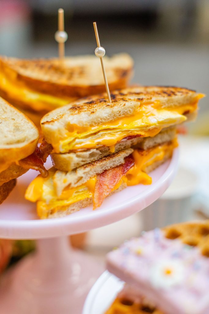 The yummy didn’t stop there! Egg sandwiches, fruit skewers, blueberry muffins, and THE cutest waffles. It was snack heaven, and if you have a kiddo you know, snacking is king!!