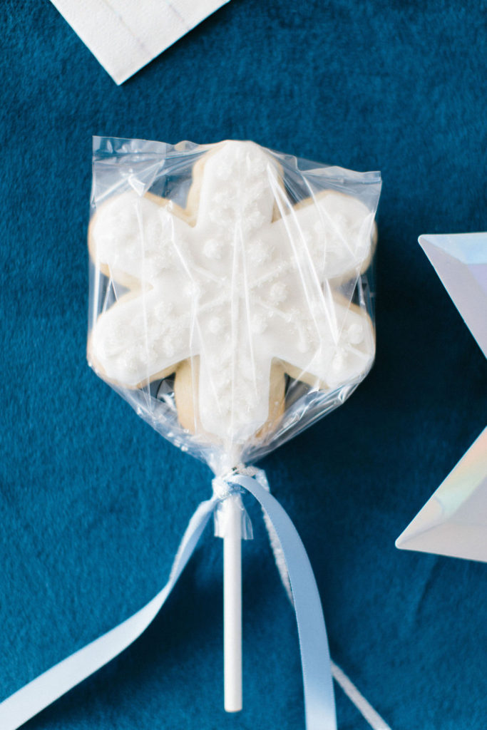 And it had to be a party fit for Princes and Princesses! Not only were their invitations addressed accordingly, but their place cards were hand lettered with their official royal names. Each little guest enjoyed snowflake cookie magic wands, and took turns spending time with Elsa in an elegant styled lounge straight out of the Arendelle castle.
