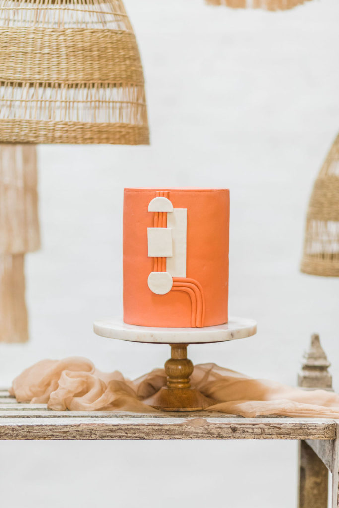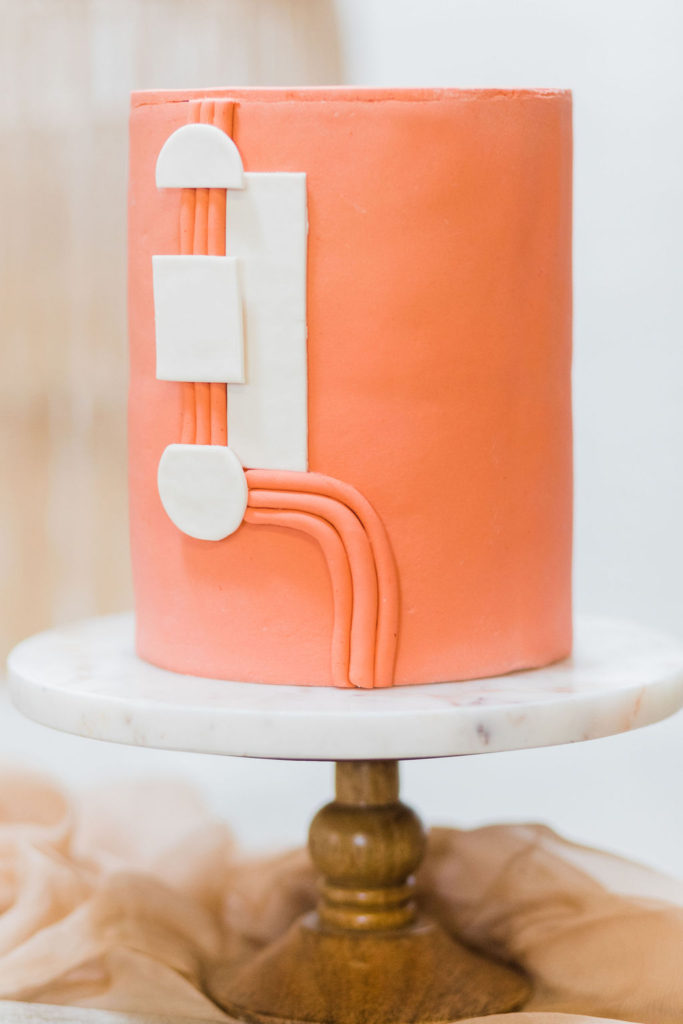 “For the cake, I wanted to create something with a modern aesthetic, clean lines, and an artful appearance.  The flavor is our most popular, moist, and velvety lemon cake with raspberry filling and raspberry buttercream frosting. The buttermilk in this cake makes the cake extra moist!”