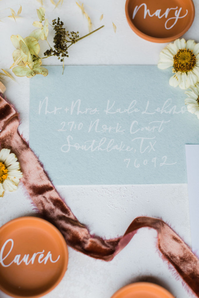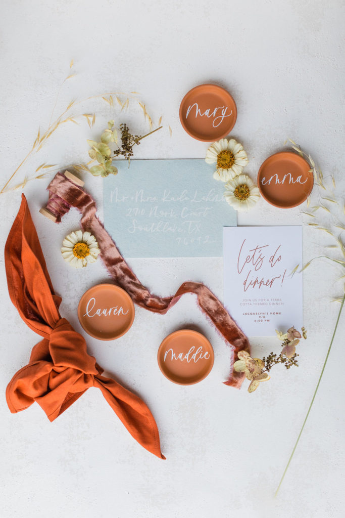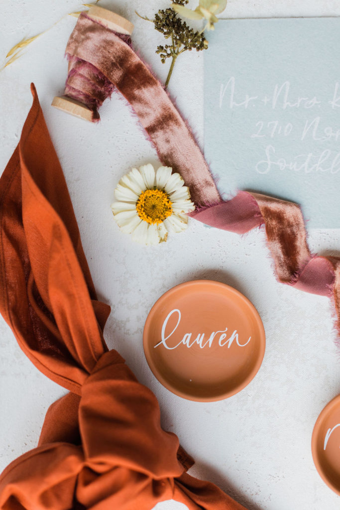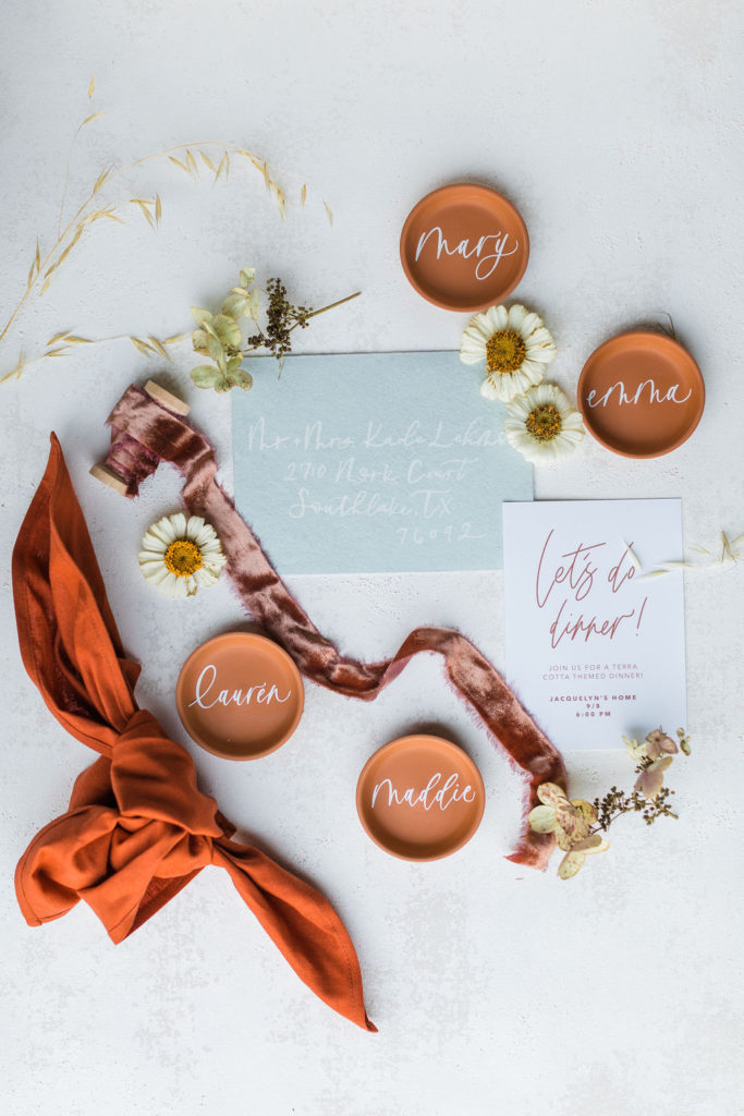 All good parties begin with an invite! Proper Letter added this soft blue tone to the shoot and I really love how it mixed in. Plus, those little terra cotta place cards may be my favorite detail!