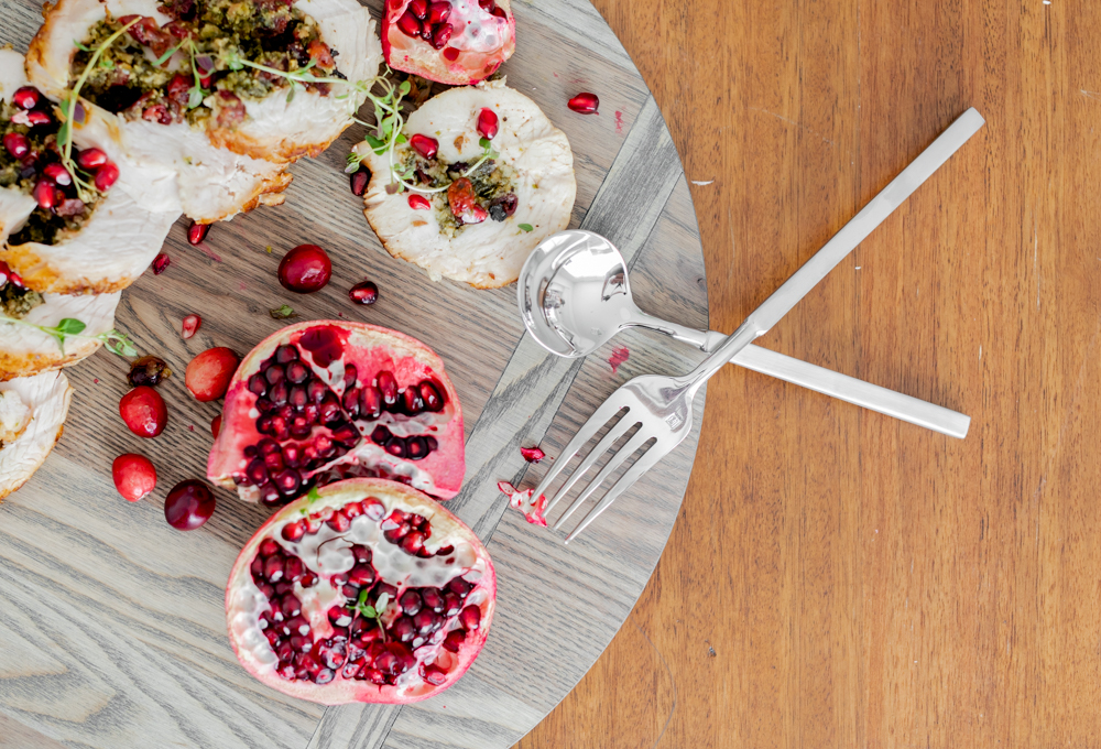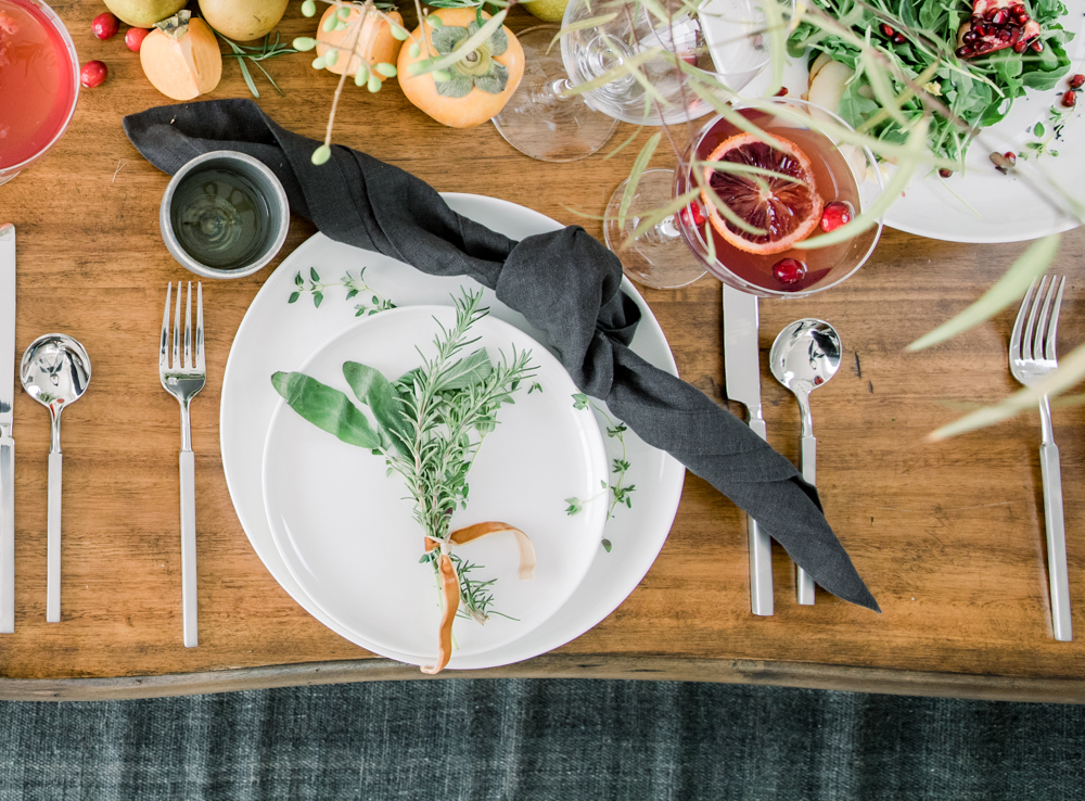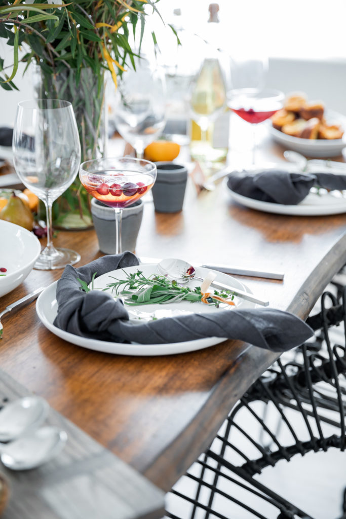 Okay, the table settings are just as important as the food! All these pretties are from Sur La Table! They have a great selection of tabletop items for any holiday. This year, I went with dark tones as the pops of color and wooden textures around classic white plates to bring it all together. You can shop all the tableware below at the bottom of the post!