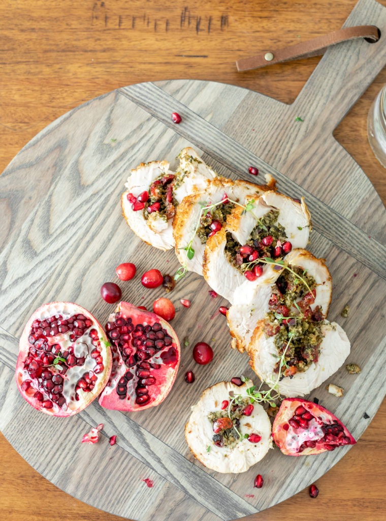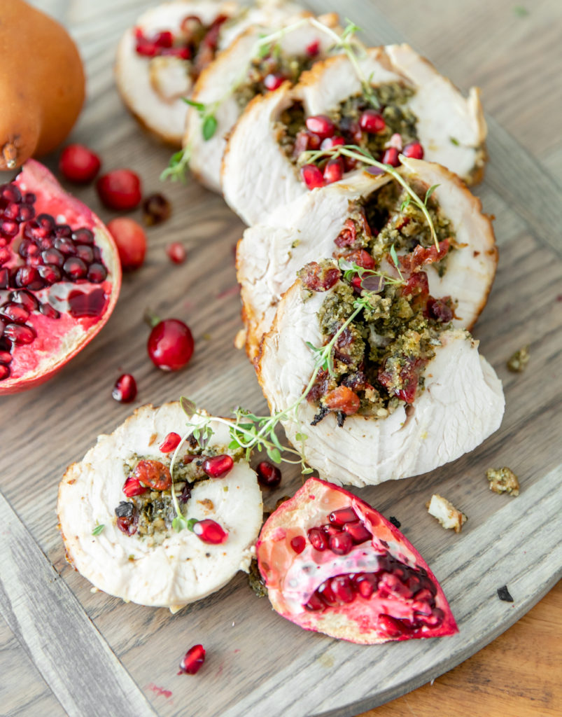 Butterfly the turkey breast: Place the breast on a cutting board, skin side down. Using a chef’s knife, hold the blade parallel to the board and slice into the breast, starting at the thickest part. Cut along the length of the breast but not all the way through. Open it up like a book.