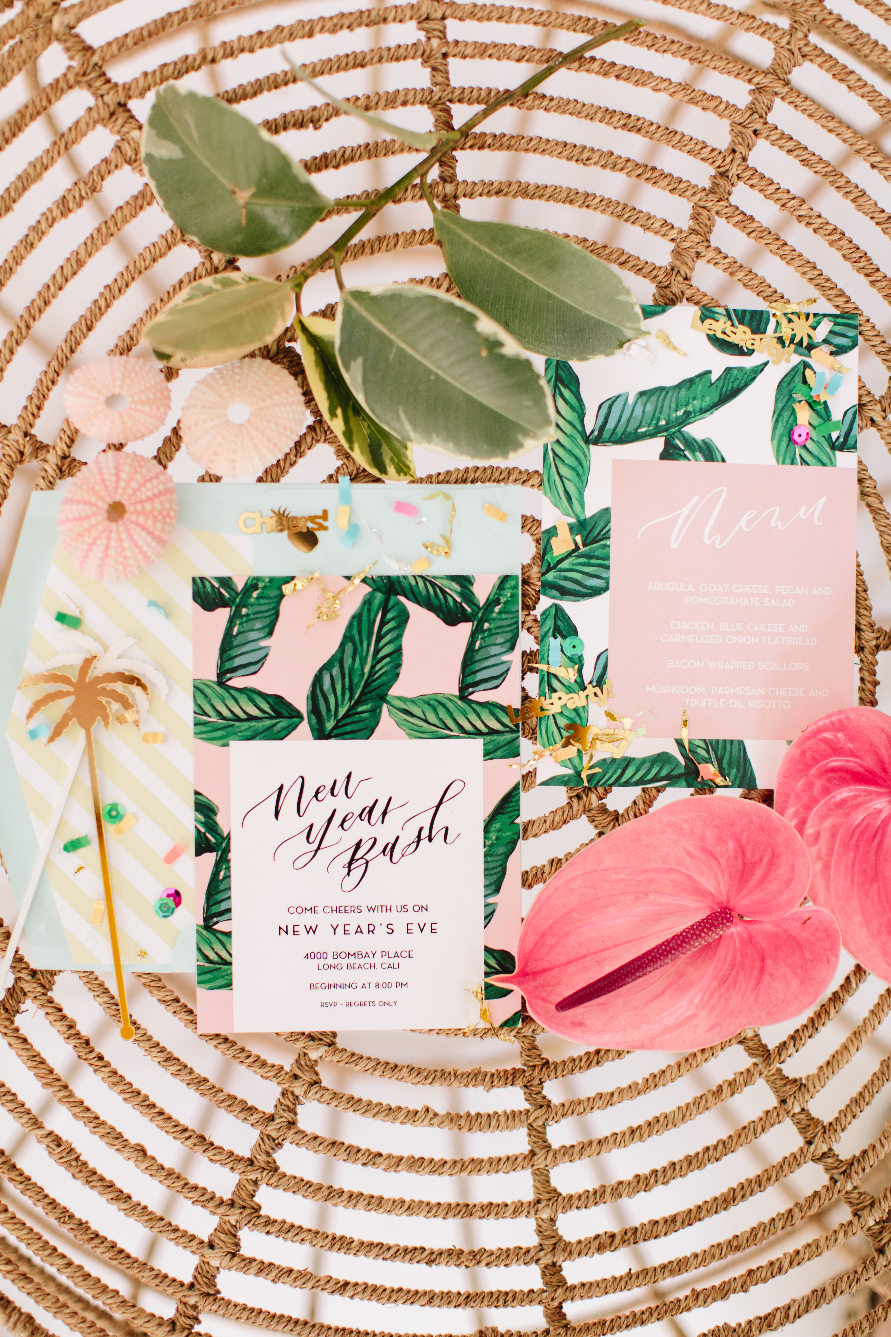 One of the most anticipated holidays of the year is upon us… Just two more days till New Years Eve!!! This is THE holiday for getting the party started, and I did just that! Usually when you think of New Years Eve you think of the typical black, gold, silver, white color scheme. Well, I wanted to try something different this year, and since the tropical trend has been such a continuous favorite, that is right where my mind went. So this year we decided on a tropical New Years Eve with Lulu & Georgia, and it turned out pretty amazing!