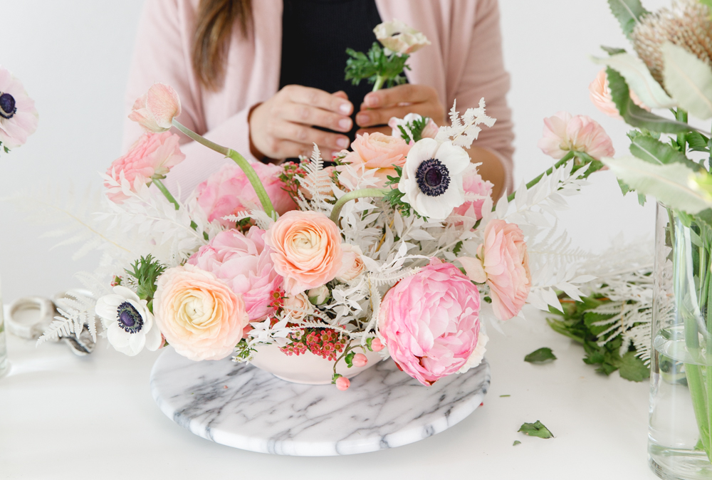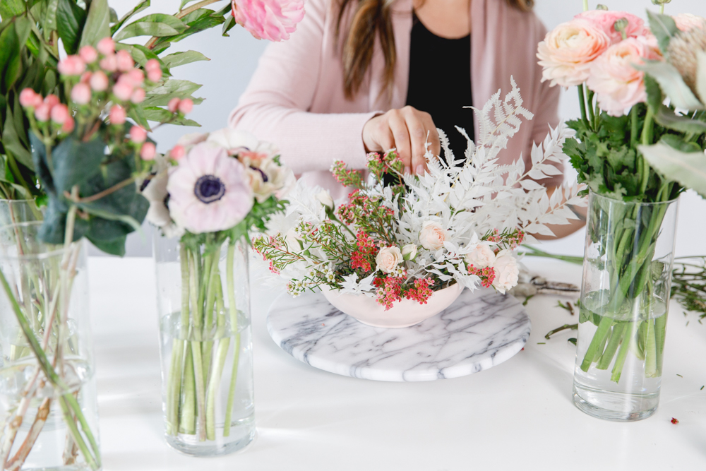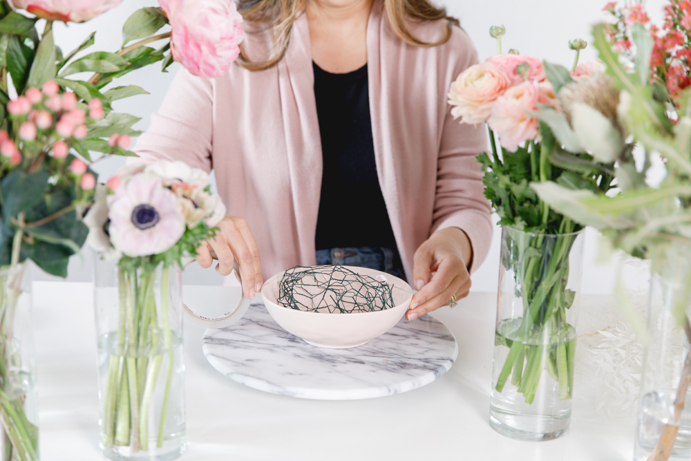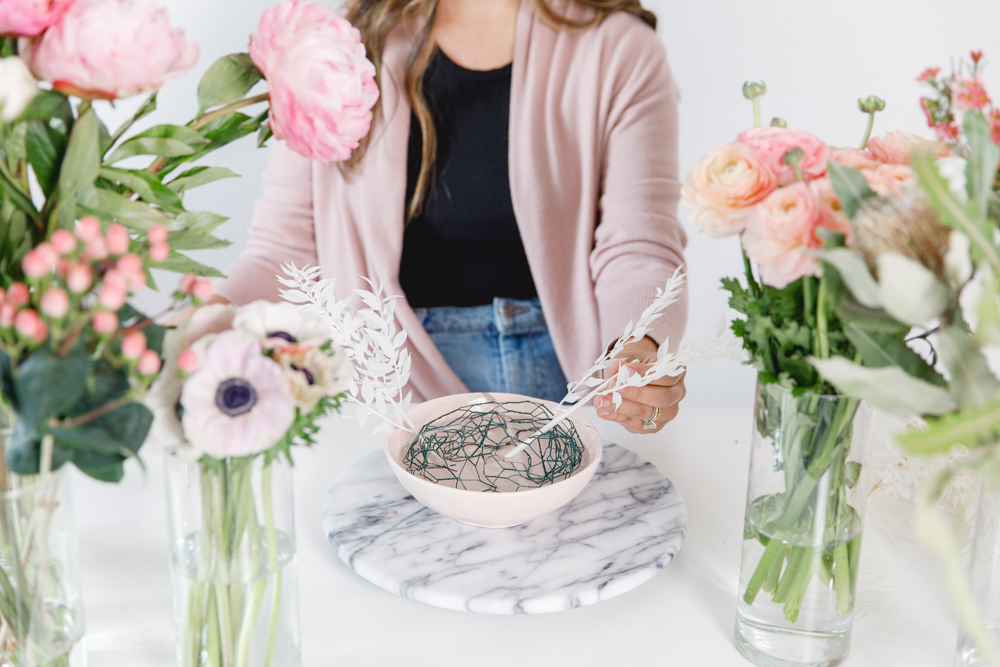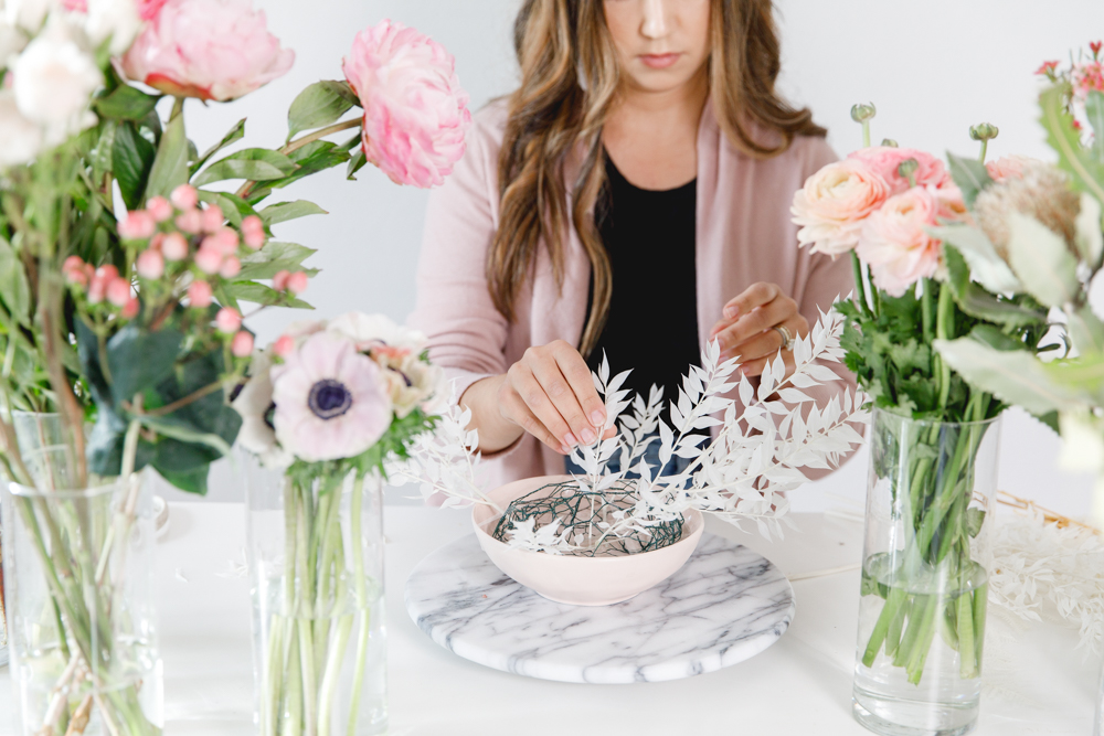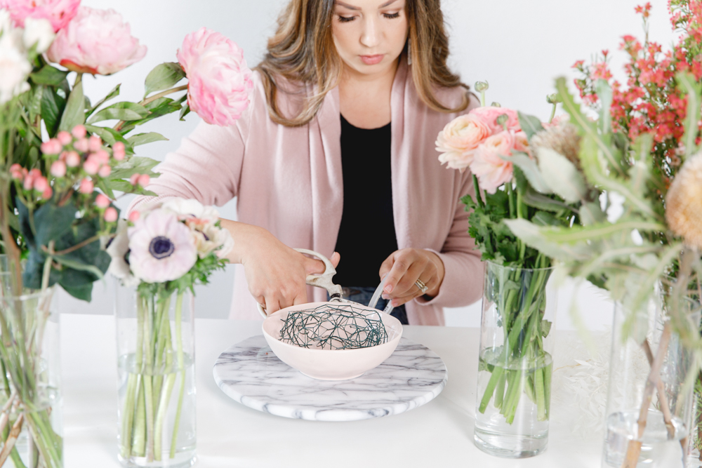 Hey guys, we have a fun DIY for you today! To get flowers on any occasion, everyone loves. There is no doubt about that, but what if you can achieve a pretty arrangement yourself at home? Lucky for us, Paulina from Fig + Vine is giving us the step by step on how she creates her beautiful arrangements. Plus, some tricks and tips for us as well. So let’s channel our inner florist, and create some pretty just like the pros.