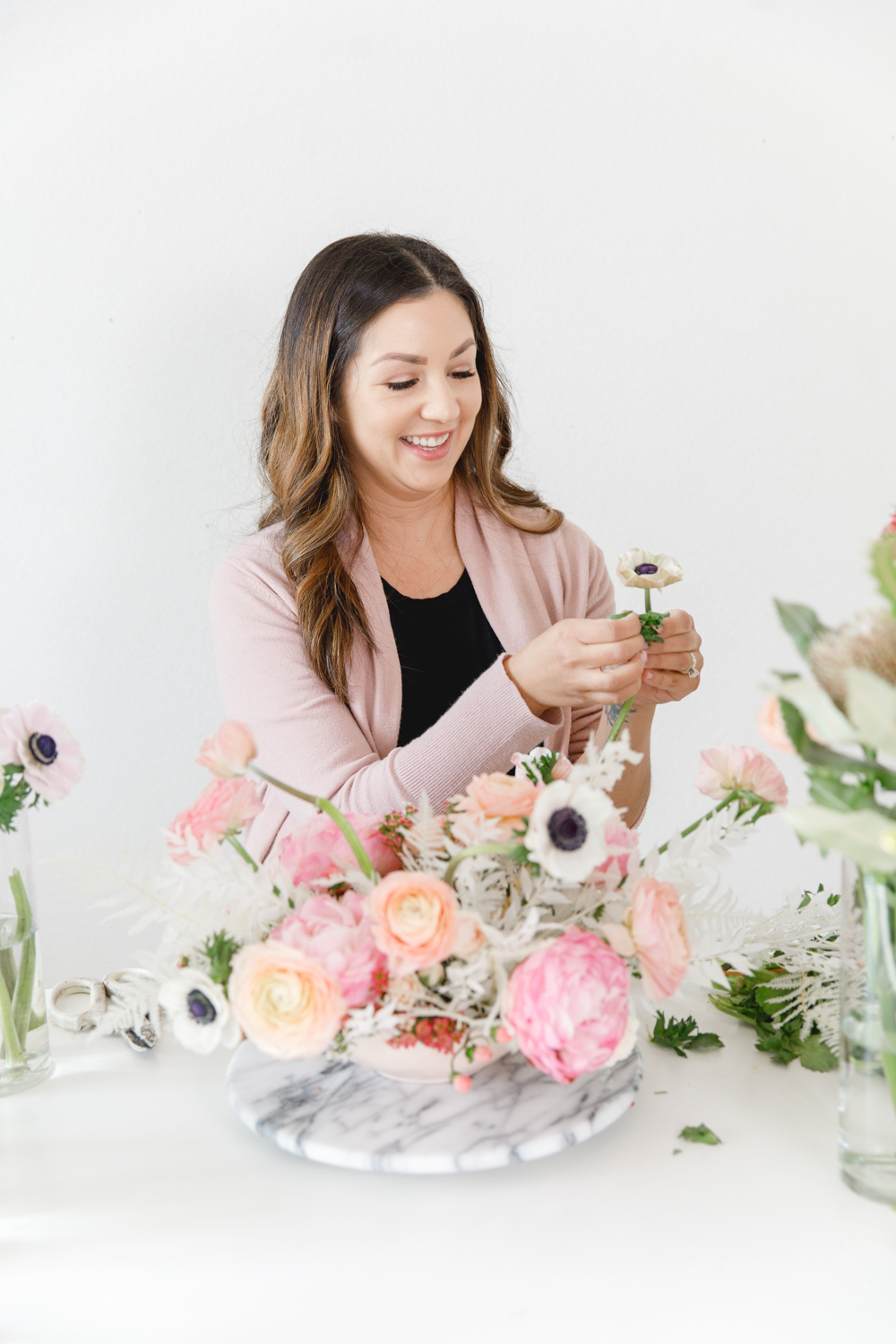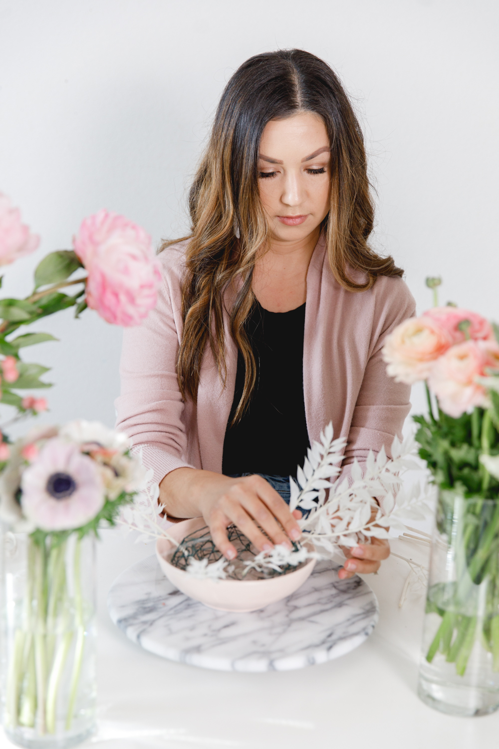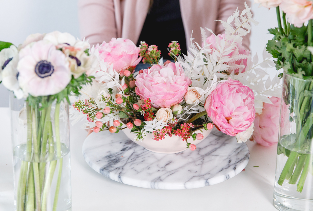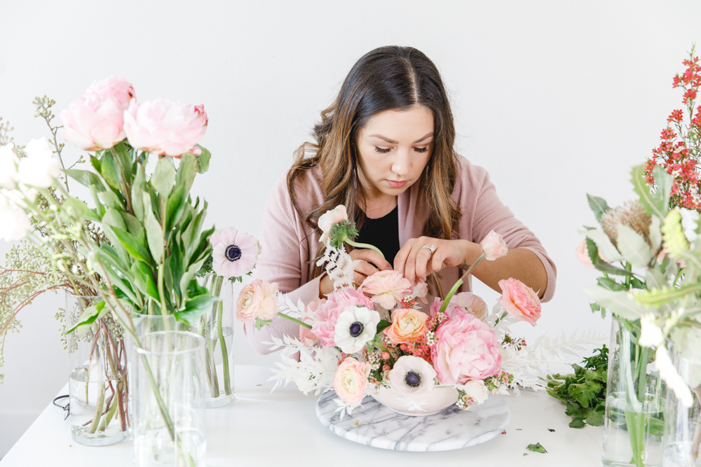 Hey guys, we have a fun DIY for you today! To get flowers on any occasion, everyone loves. There is no doubt about that, but what if you can achieve a pretty arrangement yourself at home? Lucky for us, Paulina from Fig + Vine is giving us the step by step on how she creates her beautiful arrangements. Plus, some tricks and tips for us as well. So let’s channel our inner florist, and create some pretty just like the pros.