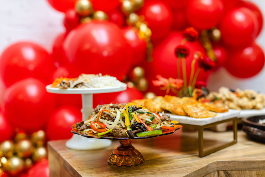 The table was set and our colors were Red and Gold! In Chinese culture, the colors red and gold are evoked during times of celebration, especially throughout the Lunar New Year. Red traditionally symbolizes fire, good fortune, and joy. Gold, on the other hand, represents wealth, illumination, and prosperity.
