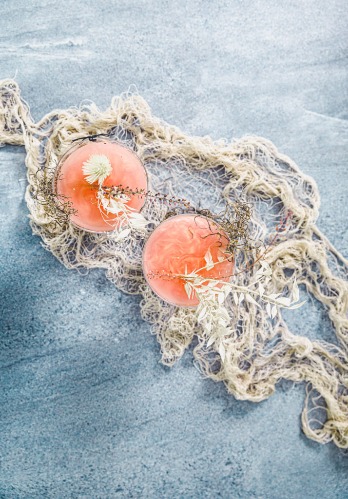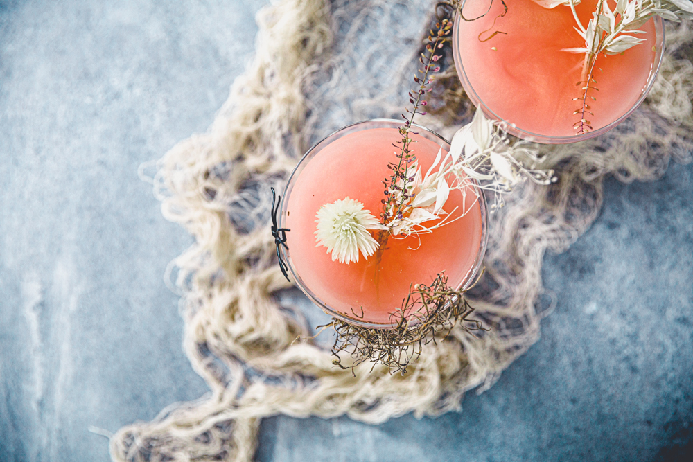 Let’s start with decorating your cute coupes. I made a little dried floral arrangement using fishing wire and dried florals. Be sure to try and use dried florals that won’t break apart or shed a lot. No one wants that in their drink. I present the cocktails and then take out the floral arrangement.