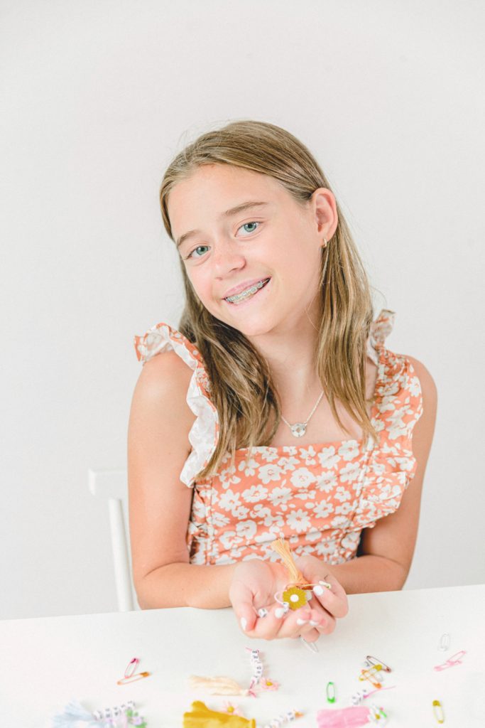 Hi! My name is Dylan, and I’m 11 years old. Since I was little, I have always watched my mom create crafty things, and I wanted to try it myself. When my mom asked what I wanted to do for my post, I thought making keychains and cookies for my friends would be a nice act of kindness. I love making bracelets and keychains, so I was really excited to do this. I even made a mood board like my mom did for her projects and picked out all the pieces to create with.