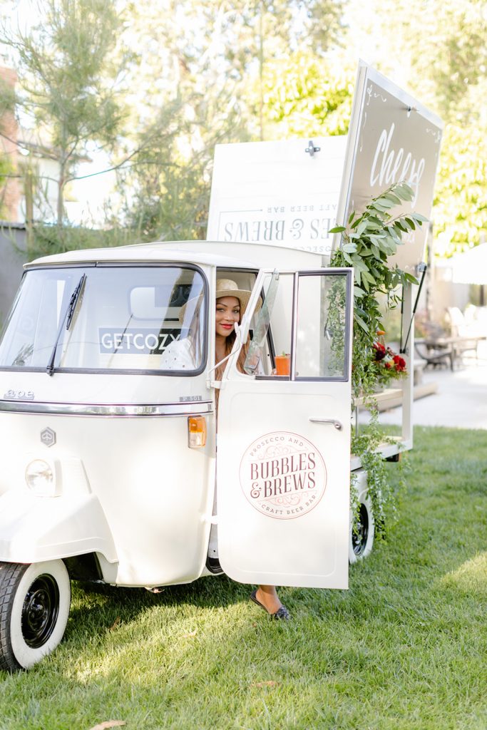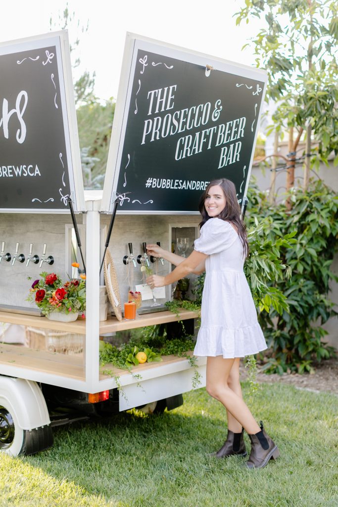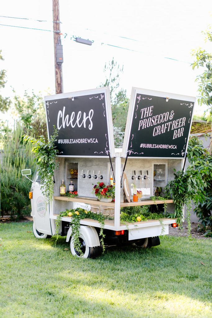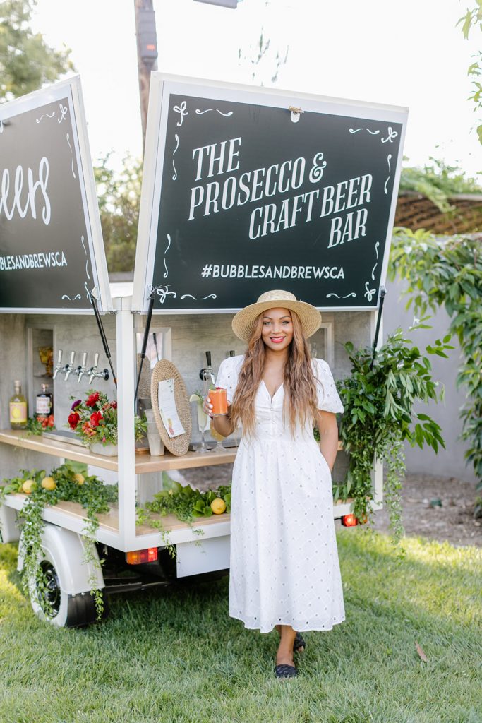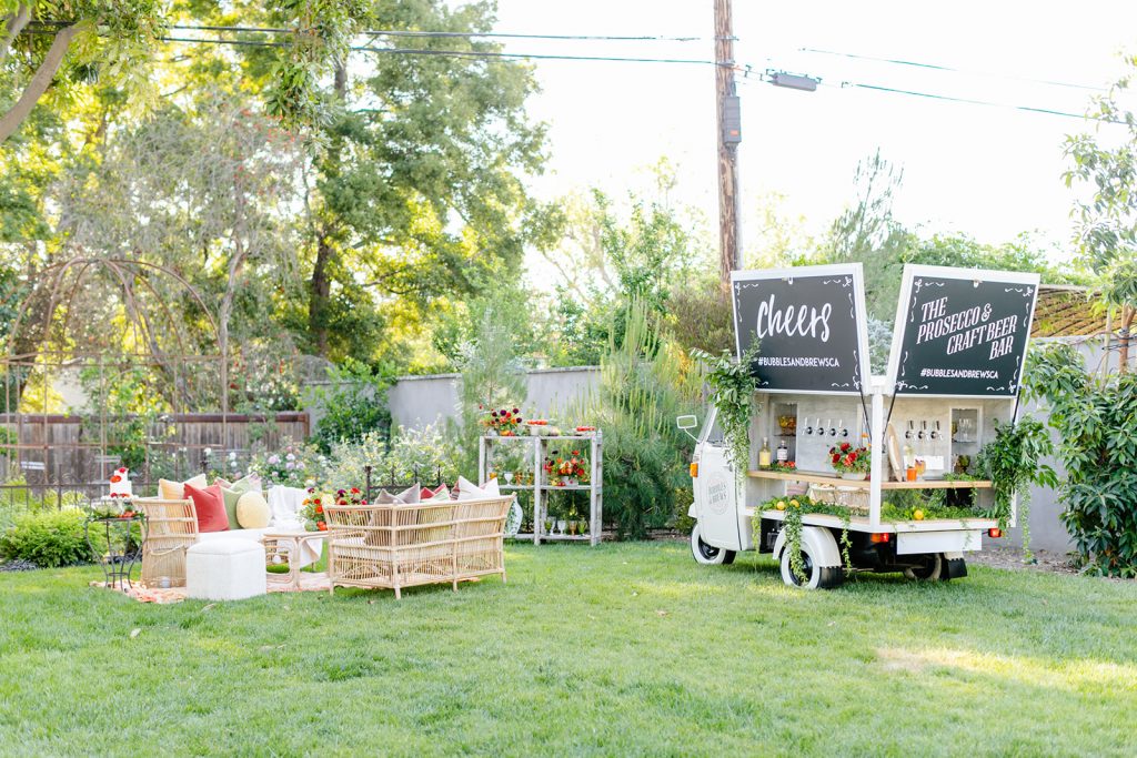 For a special treat, our friend Tarsia from Bubbles and Brews came by with their adorable truck sharing delicious wines and cocktails.  Because with every good event comes very good drinks!  We toasted at the pretty lounge that Sweet Salvage Rentals put together before dinner.