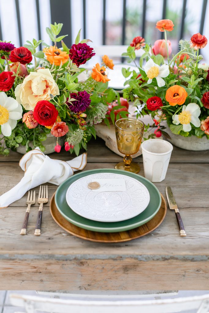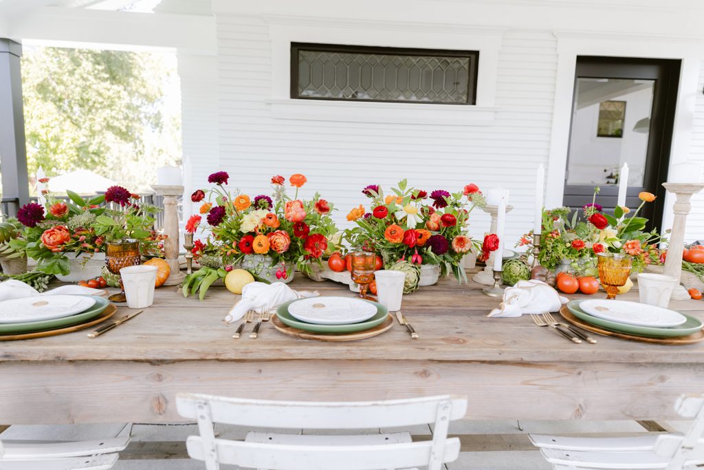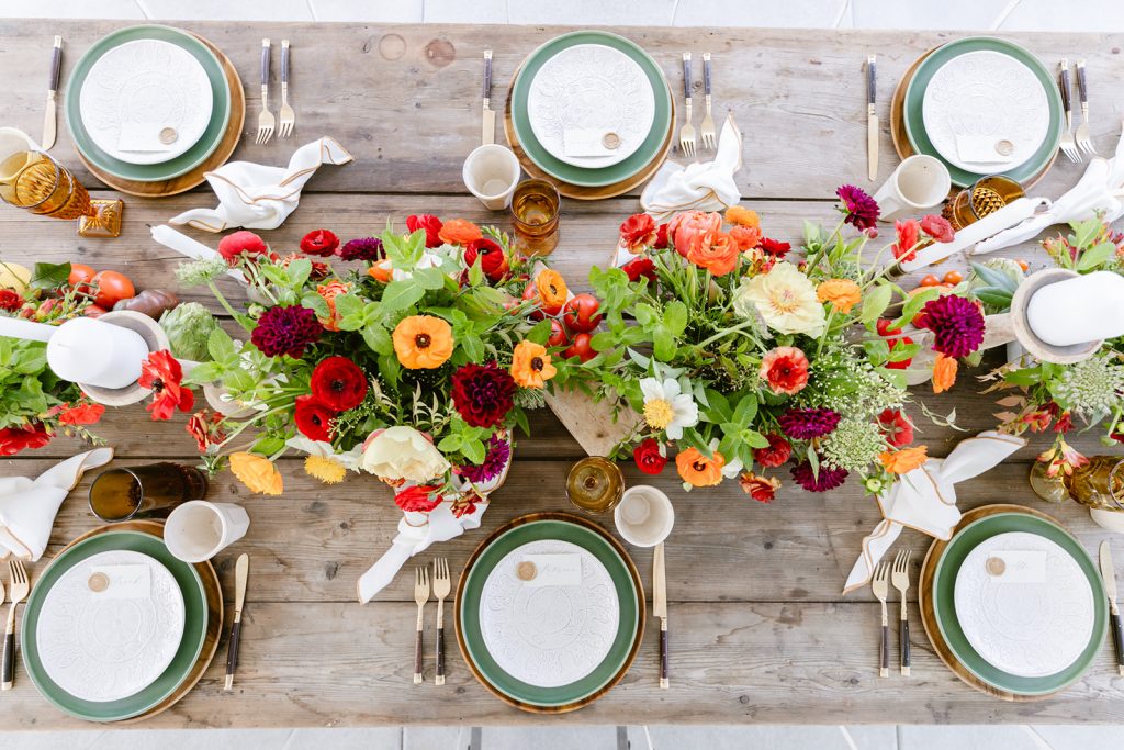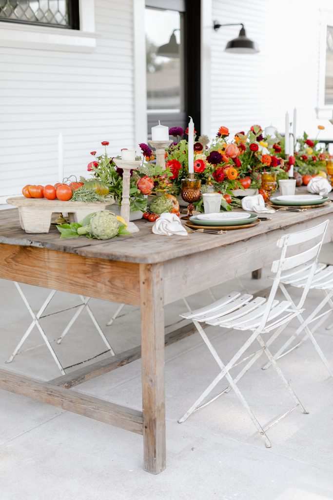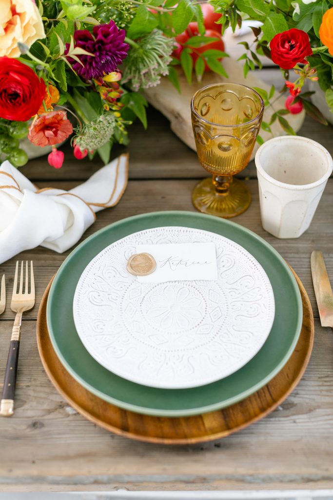 Golden Sol Floral Co did an amazing job of bringing not only gorgeous florals but tons of produce as well!  Adding tomatoes, artichokes, lemons, and other seasonal veggies and fruits really added character to this table and brought the taste of Italy right here to California!