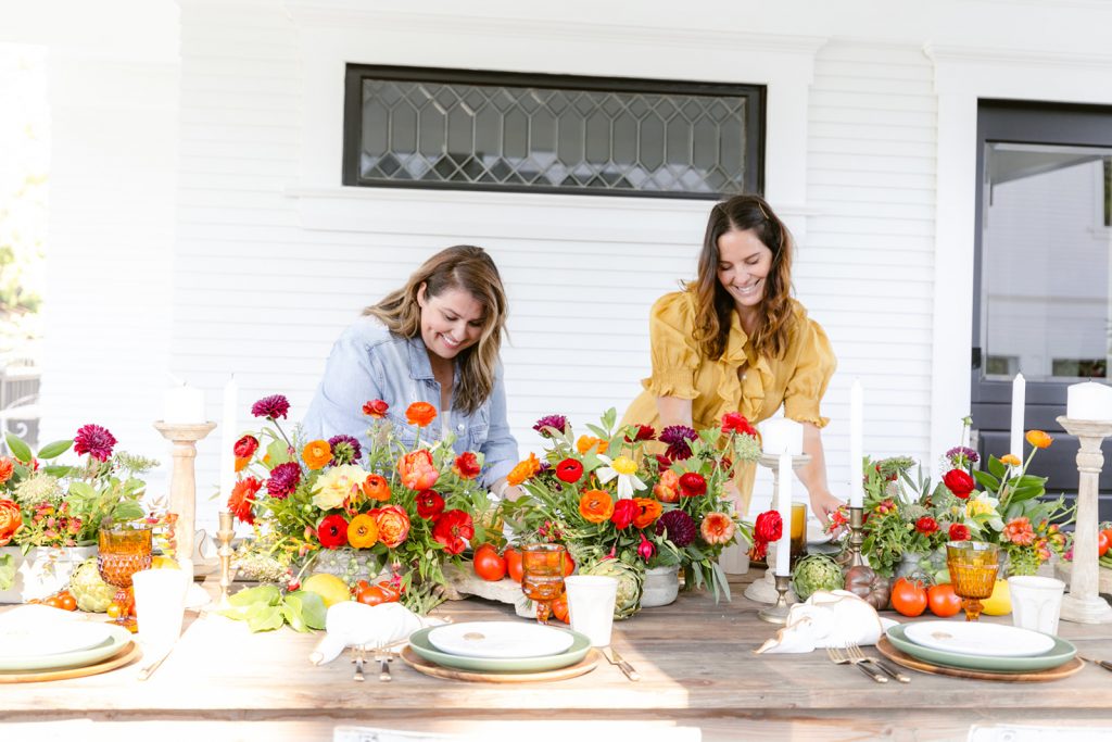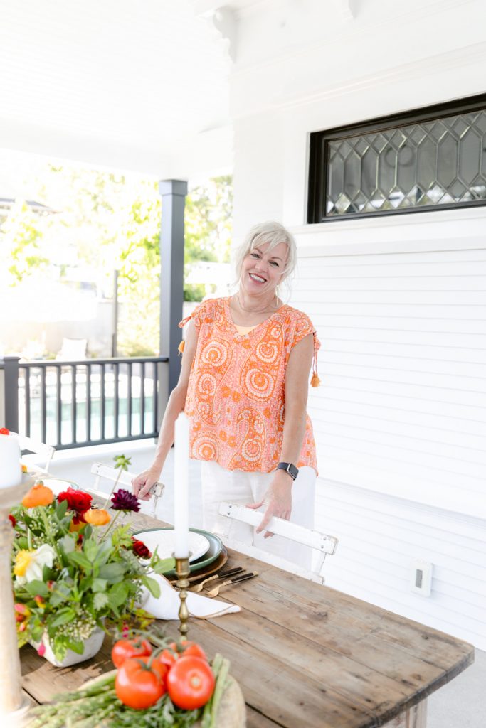 Sabrina and I set the table with Hostess Haven’s beautiful tabletop pieces using rich colors of olive green and amber.  I especially loved the rustic wood flatware we chose.