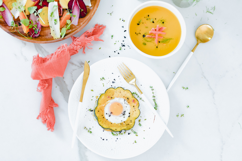 The squash slices without the eggs can be roasted up to 3 days ahead of time and stored in an airtight container in the refrigerator. Oh yeah! When ready to enjoy, let the slices come to room temperature on a rimmed baking sheet covered with parchment paper as the oven preheats to 350°F. Crack an egg into each slice and proceed with the recipe.