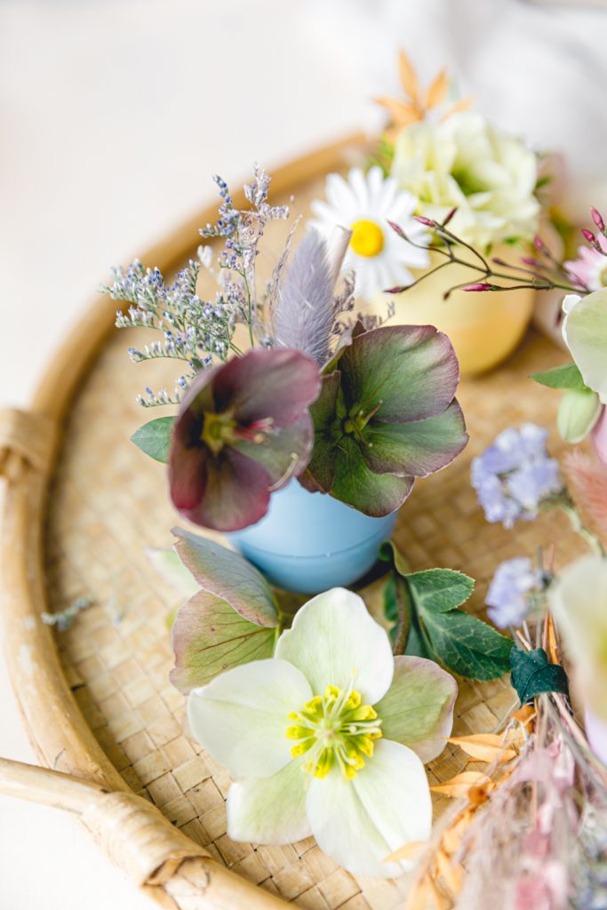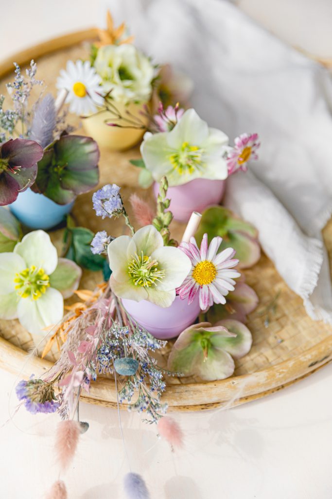 Time to make the frozen Lillet. Mix your Lillet Blanc and club soda. I did mine in batches so you can make more than one. Place in an 8X8 baking dish, and freeze. Every 30 min or so, scrape with a fork. Continue until all the mix is frozen and “scraped”. When ready to serve, scoop the frozen Lillet into the eggs. Stick in the freezer for about 20 minutes. Then right before serving, take out and garnish. I garnished with flowers, and a straw. Then enjoy right away!