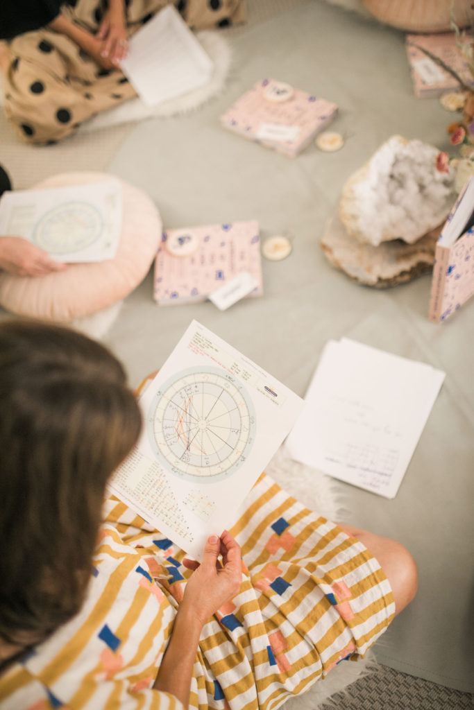 Teaching people about their rising/ascendent and moon sign is probably one of my favorite parts of the class. Immediately people begin to understand themselves in a very different way. A major part of astrology is that it brings a sense of awareness. We tend to get lost in this fast paced world of trying to keep up, searching for fulfillment in places that don’t nurture true happiness. And this awareness is a first step towards tapping into our true self. Our charts present a guide to how unique and special we are, we then learn how to grow based on our own needs. As we dive deeper into the chart we start to understand how the planets move, and where they shift your life. You can learn to navigate, anticipate, and be way more present in yourself.