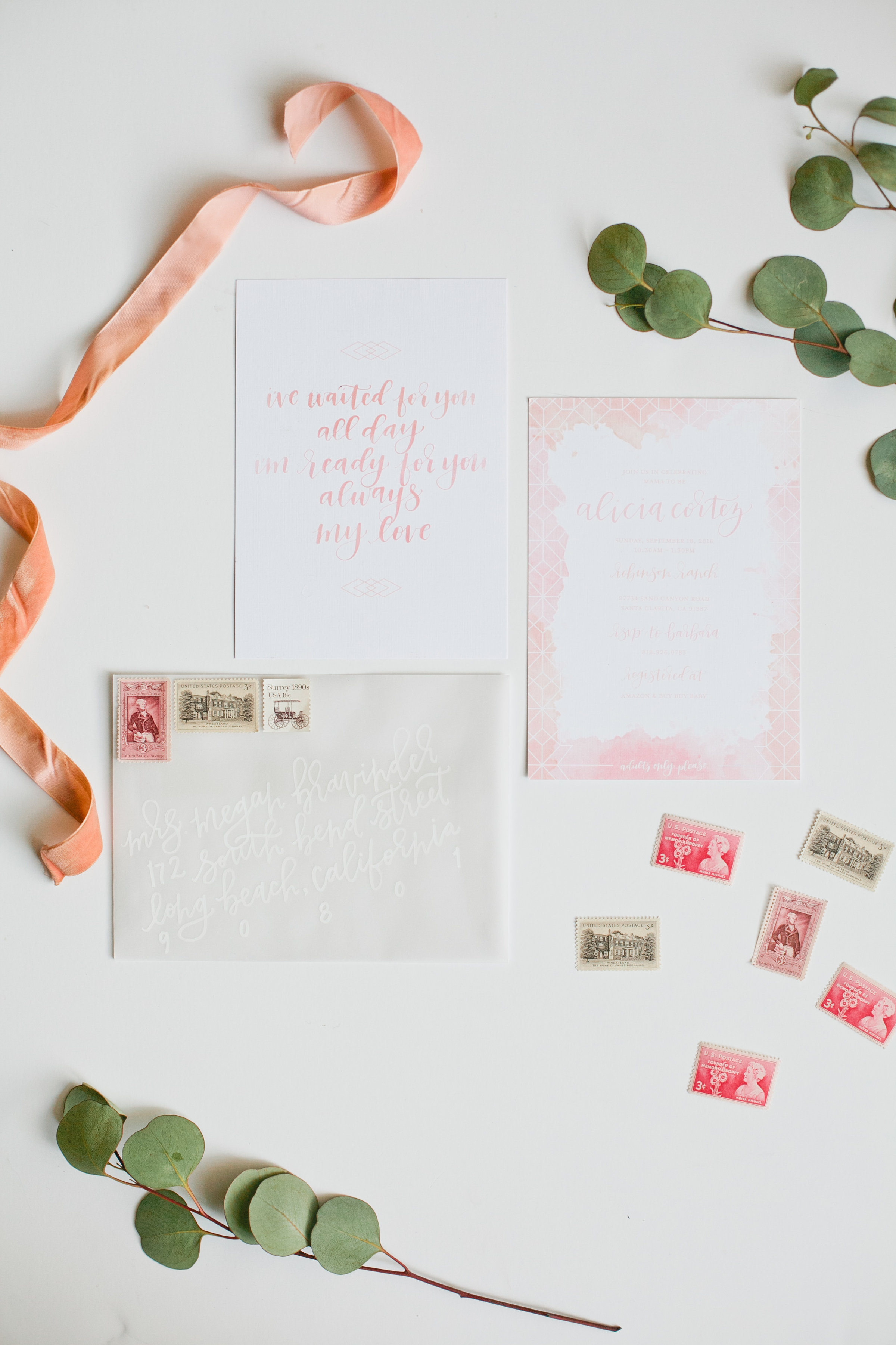 How pretty is this invite suite from Poppy Jack Shop? Sets the tone for all the pretty soft pinks to come…