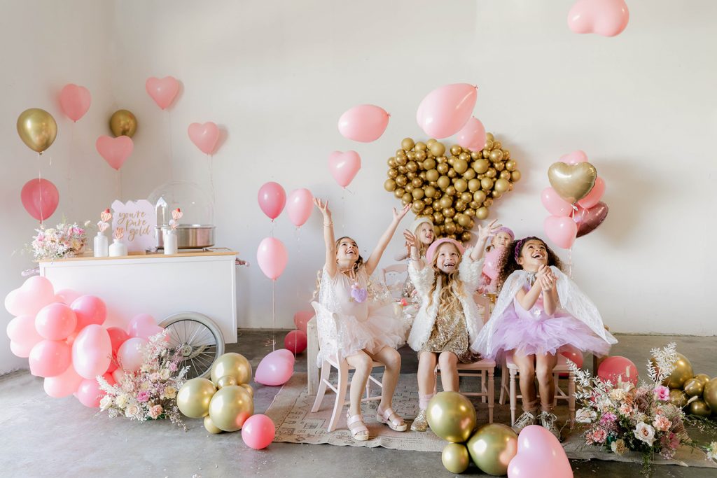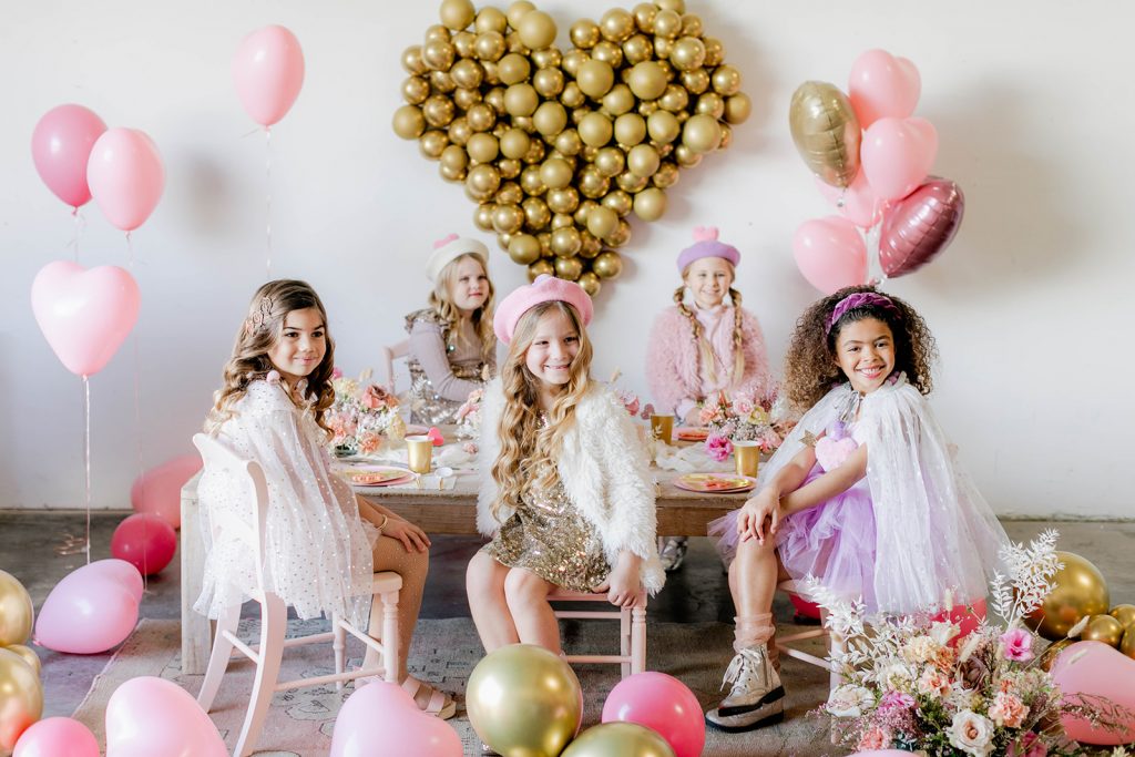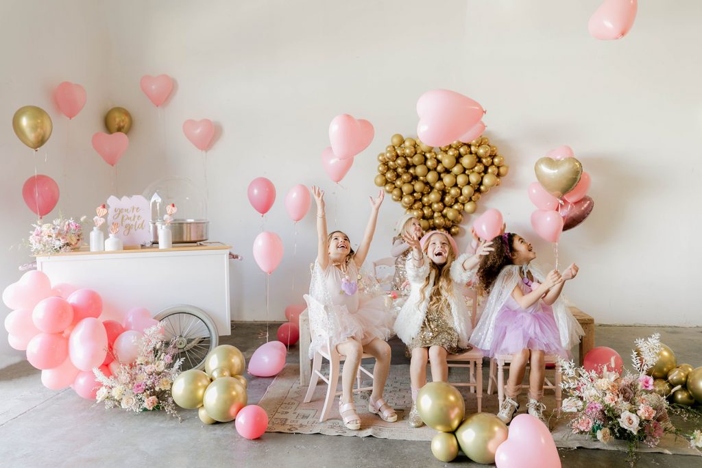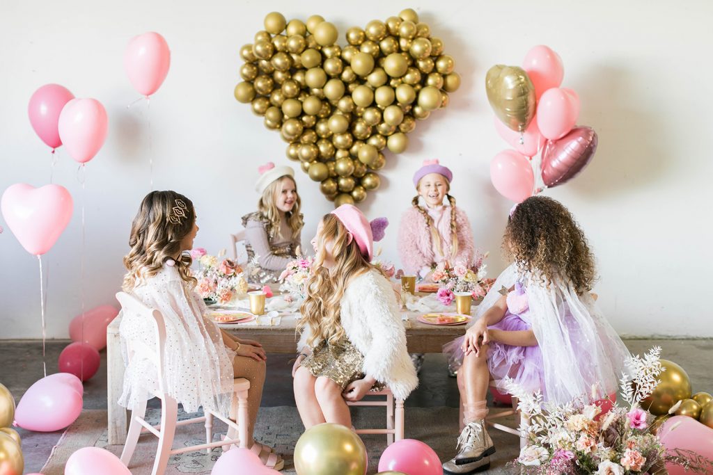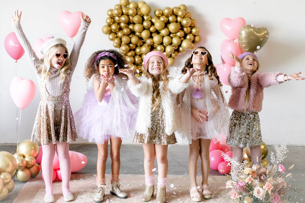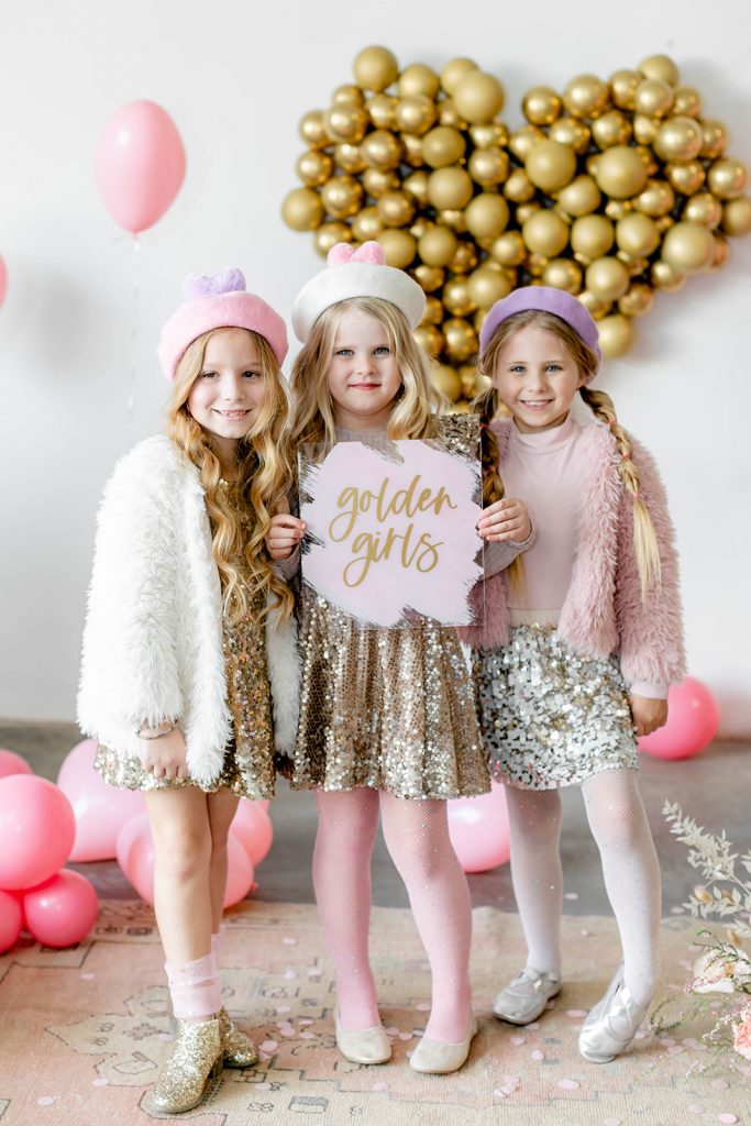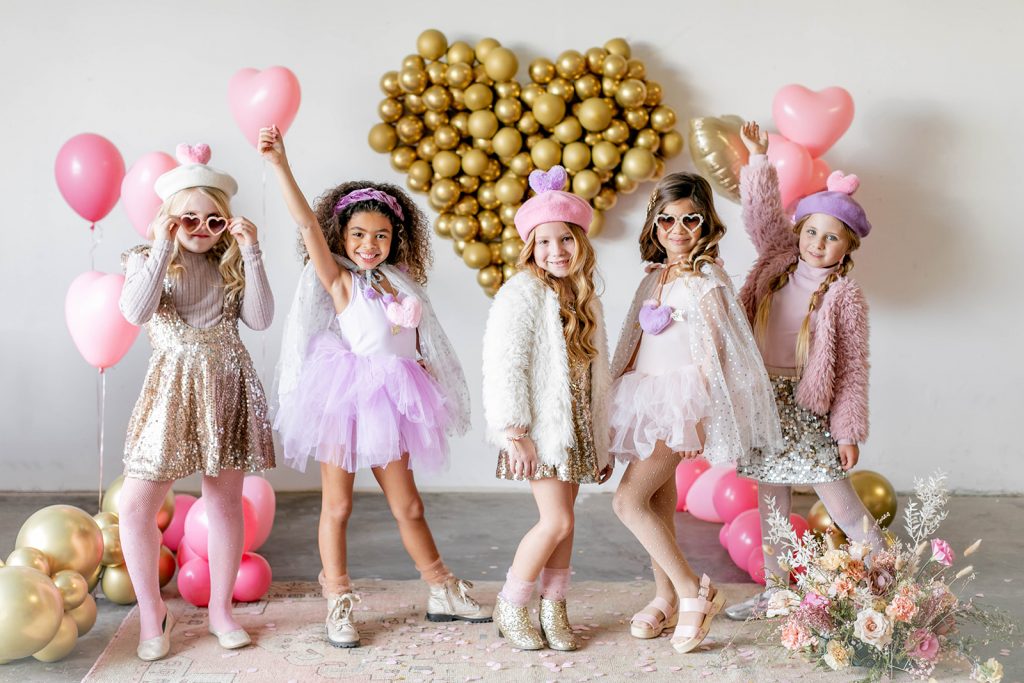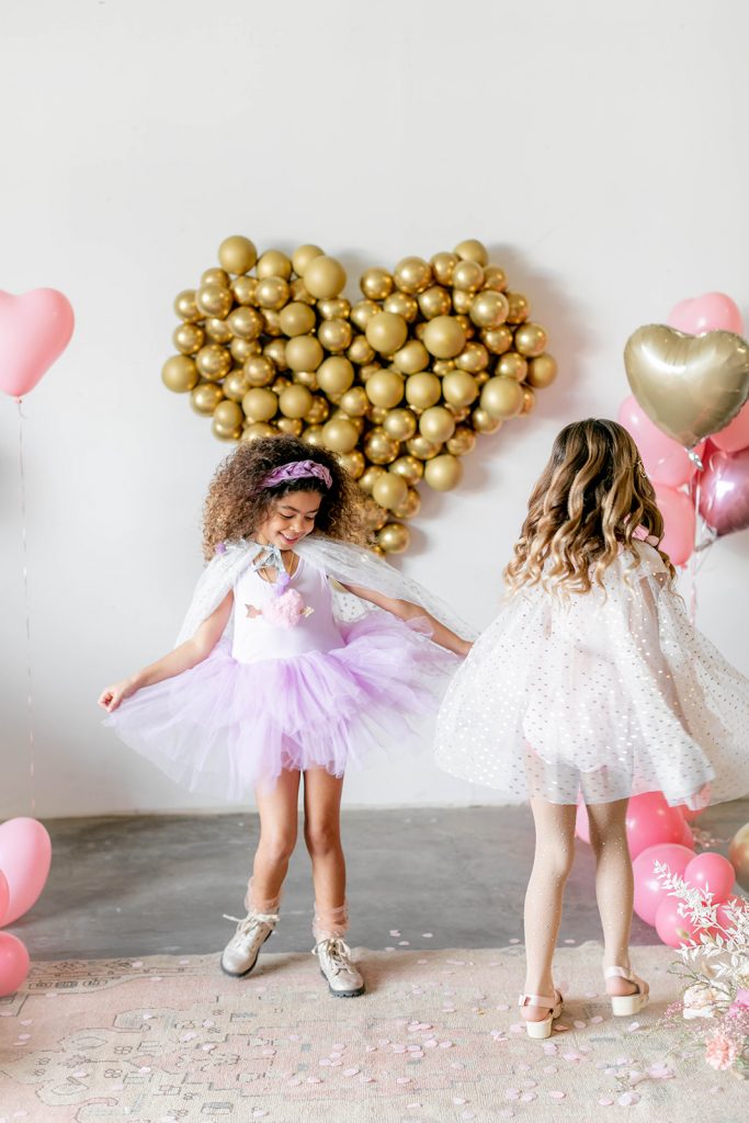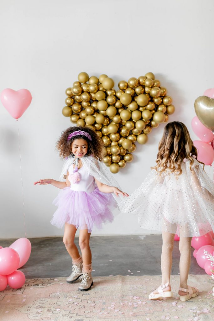 Let’s start with the obvious, that adorable gold heart by The Pop Shop! Isn’t it such a cute backdrop?! You could do it in so many colors for a Valentine’s Day Party or even a birthday party, but for a Heart of Gold shoot, you better believe I went with gold! We added helium heart balloons and tossed a few more around the floor as well. I love the look of them tossed effortlessly on the floor, don’t you?!