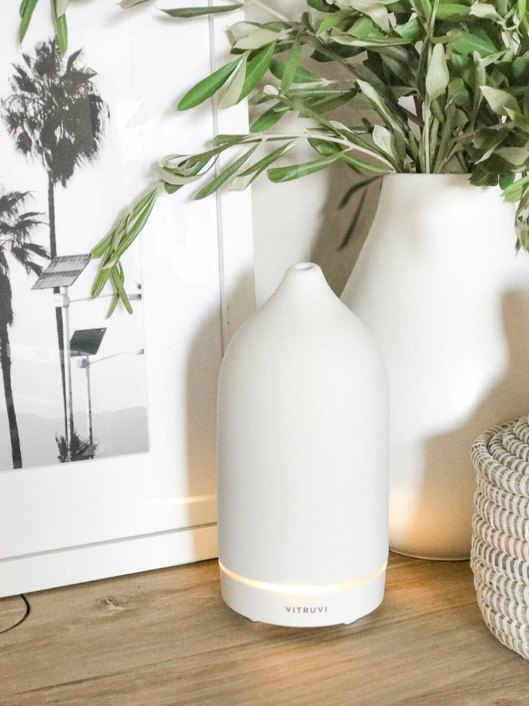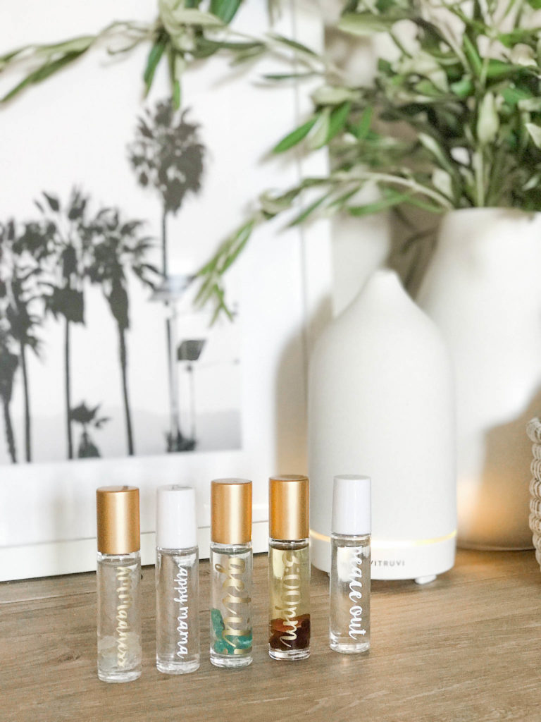 Vitruvi white stone diffuser. A hand crafted porcelain diffuser that you can diffuse essential oils with their ultrasonic technology that keeps the oils in their full integrity, plus its super quiet. This diffuser makes any space look great. I want one in every room. Along with a diffuser, roller bottles are another fun product you can become obsessed with. You starting to get the idea here, this essential oil world will get you hooked! There are a ton of custom rollers you can find on Etsy, and I mean a ton. But for me, my favorite ones are from