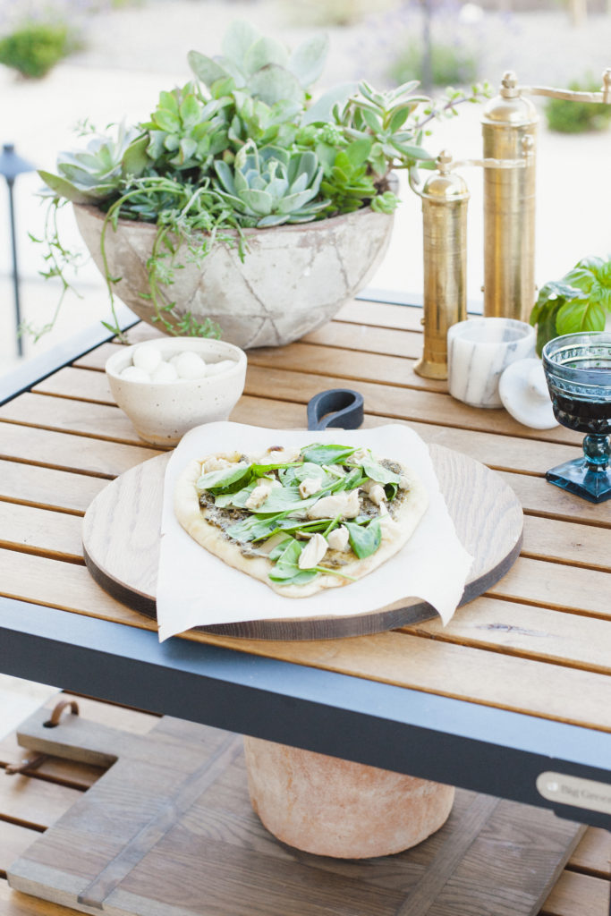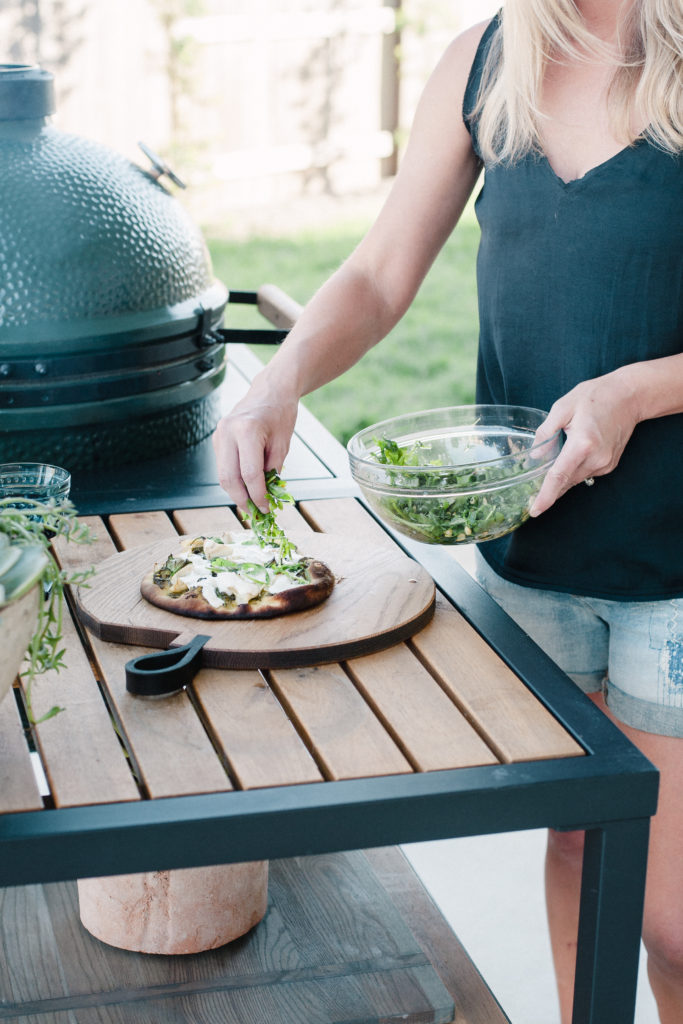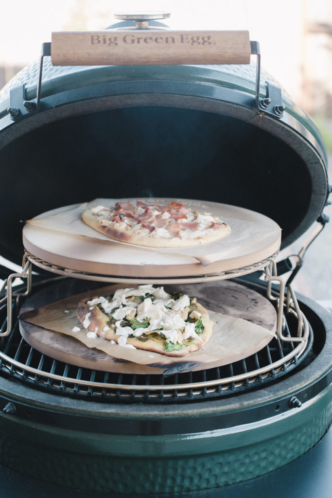 The big debate in our house when its pizza night is what kind? I’m always the one that rambles off some gourmet style pizza. My husband wants everything spicy on top of his. The kids, well they are the boring ones! Ha! Its the usual pepperoni, olives, and cheese. So this time, since I’m still riding on the birthday and Mother’s day celebration week, I got to pick what to grill up! You’ve got to take advantage of these times. We just got the expander for the big green egg so we can do more than one pizza at a time! Game changer! Scroll down to see today’s pizza menu, and how you can easily set up an outdoor dinner date for the family!