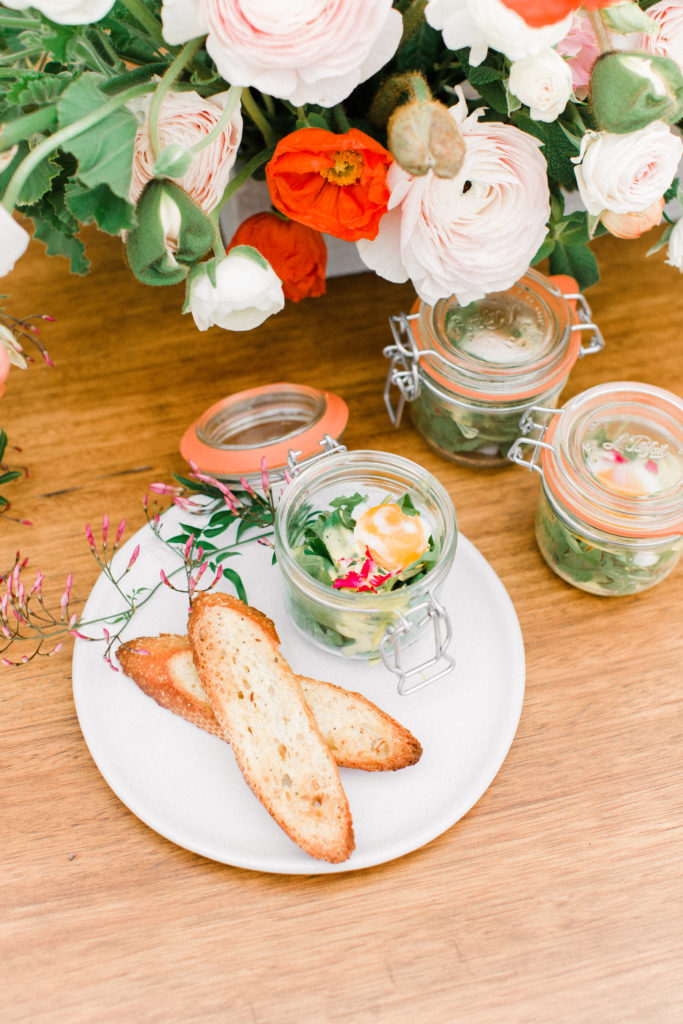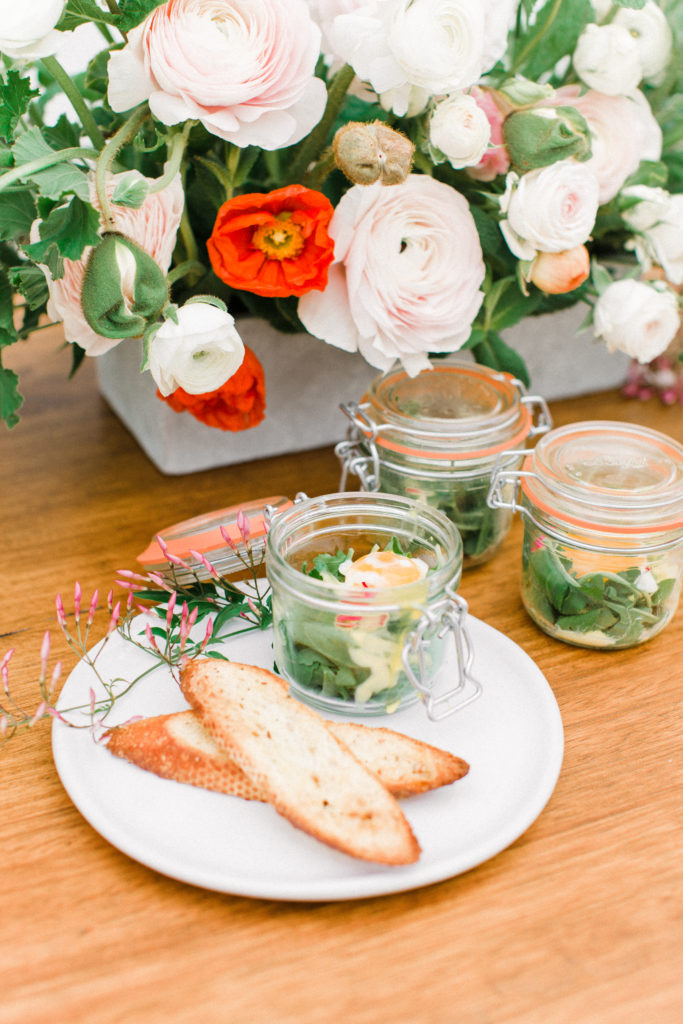 With Easter around the corner, it’s time to start compiling some ideas for Easter Sunday brunch. I always have been a lover of food and creating dishes for my family that hopefully, they love. That or they are really good at lying. Recently, my daughter has become a fan of the sunny side up egg and dipping her toast in it. I’m so proud that she opened her eyes up past the scrambled egg and found her love for that gooey yellow yolk goodness. I’m sure you can relate how hard it is to get a little one to try something new. I will totally admit, that I never was a fan until she tried it. What was I thinking this whole time insisting my yolk be cooked hard? So much of my life wasted! Geesh! In honor of my daughter’s love for the gooey yolk, I created a twist on the classic eggs florentine. This baked eggs with arugula salad with hollandaise sauce is a lighter version and more kid-friendly. Best part, they are served in cute individual mason jars.