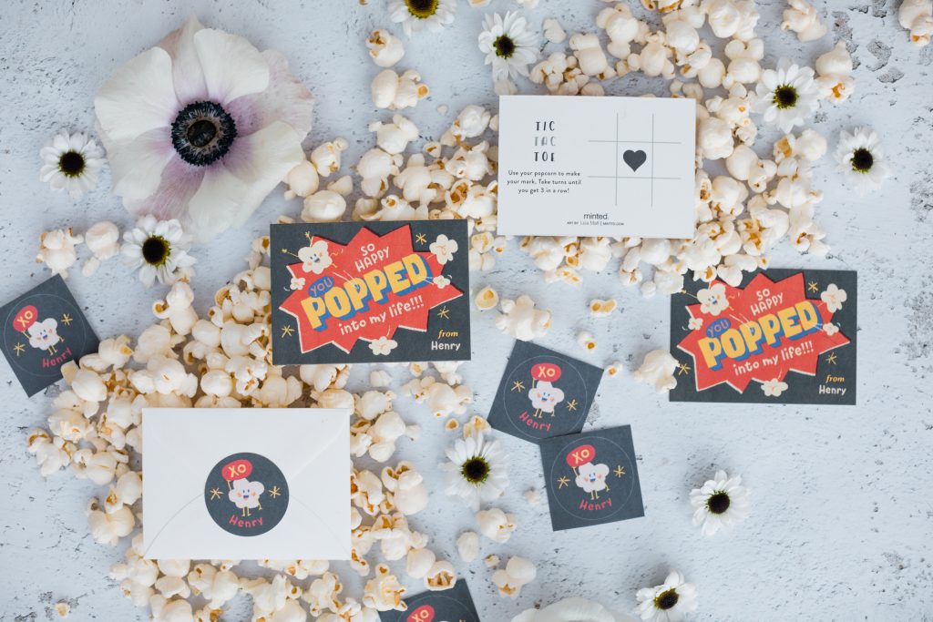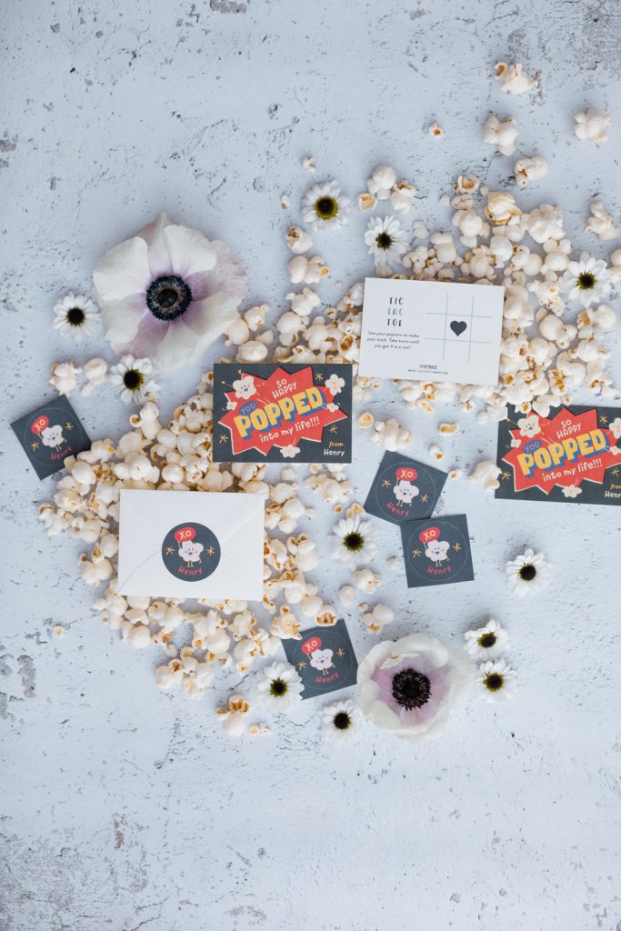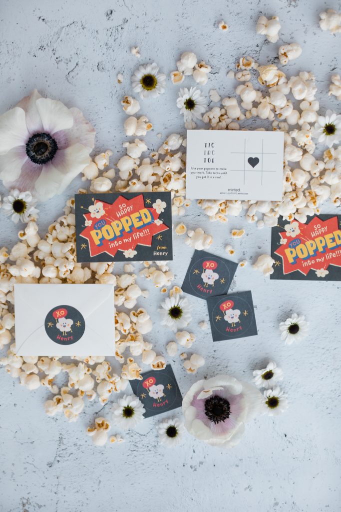 Henry liked the popcorn valentine from Minted, “So happy you popped in my life!” This kid could eat popcorn everyday, and this card & stickers set was perfect for him. He liked the black background to make it more boyish and different, and he can’t wait to give everyone he loves in class a piece of his favorite snack! He also liked the tic tac toe in the back of the card, so luckily the popcorn could be used as markers for the game as well!