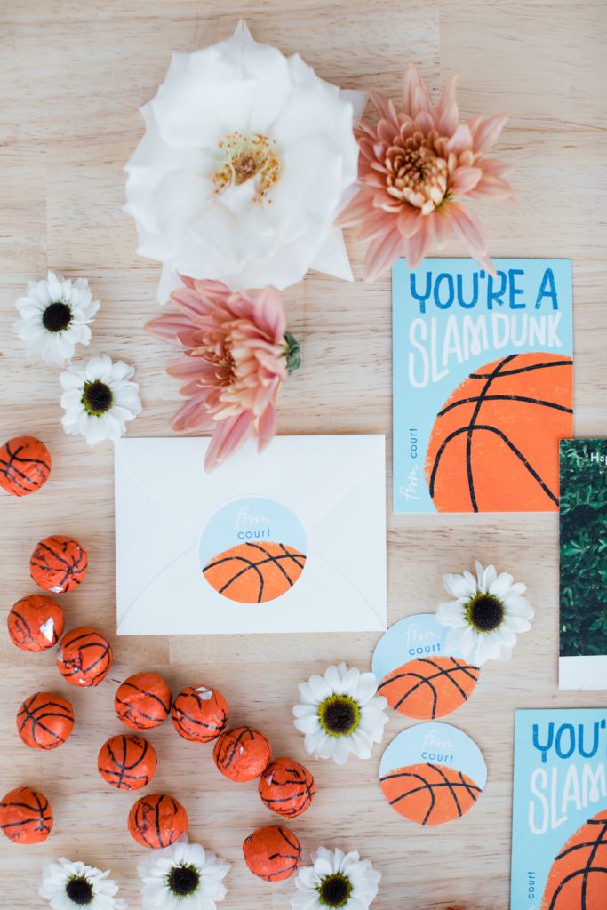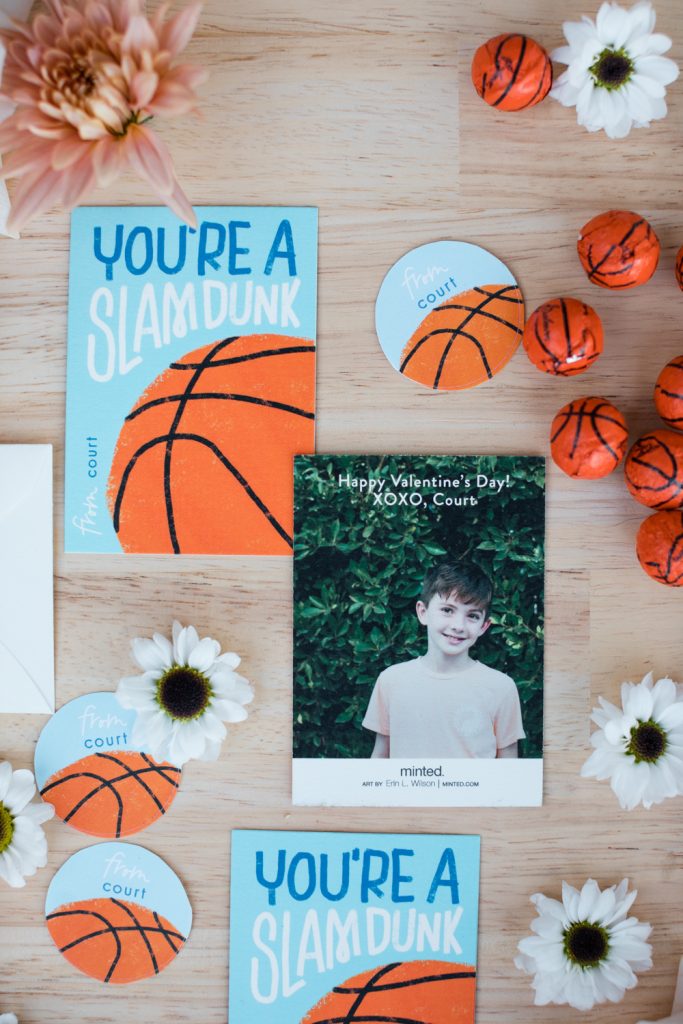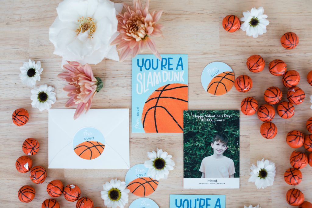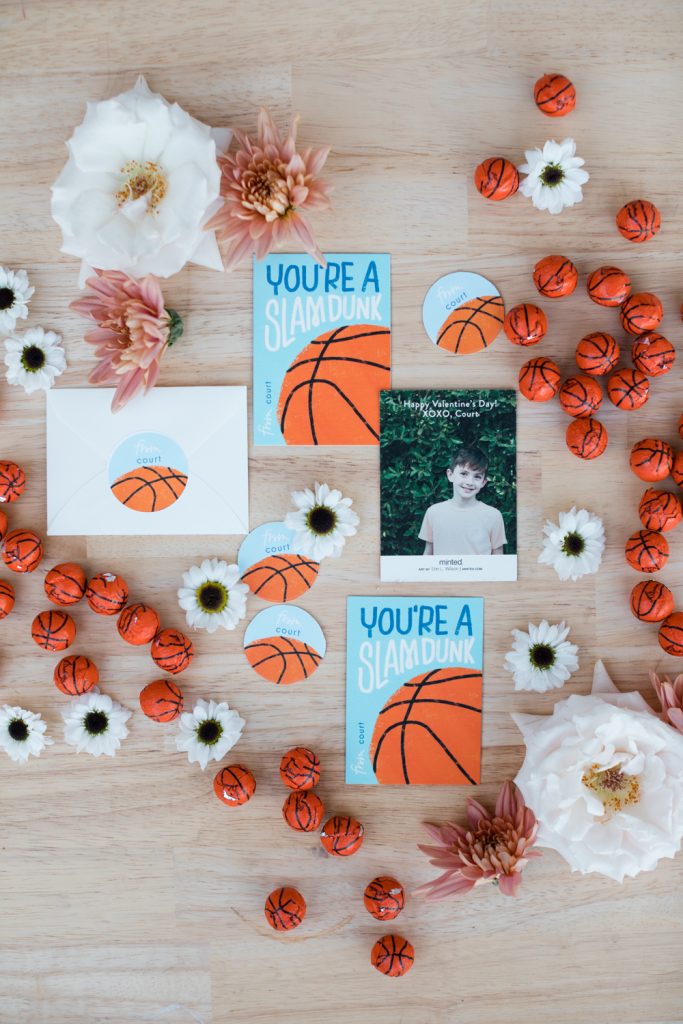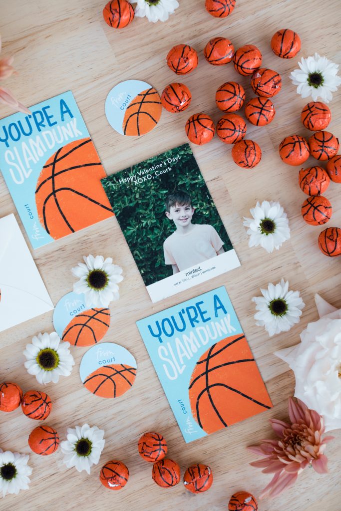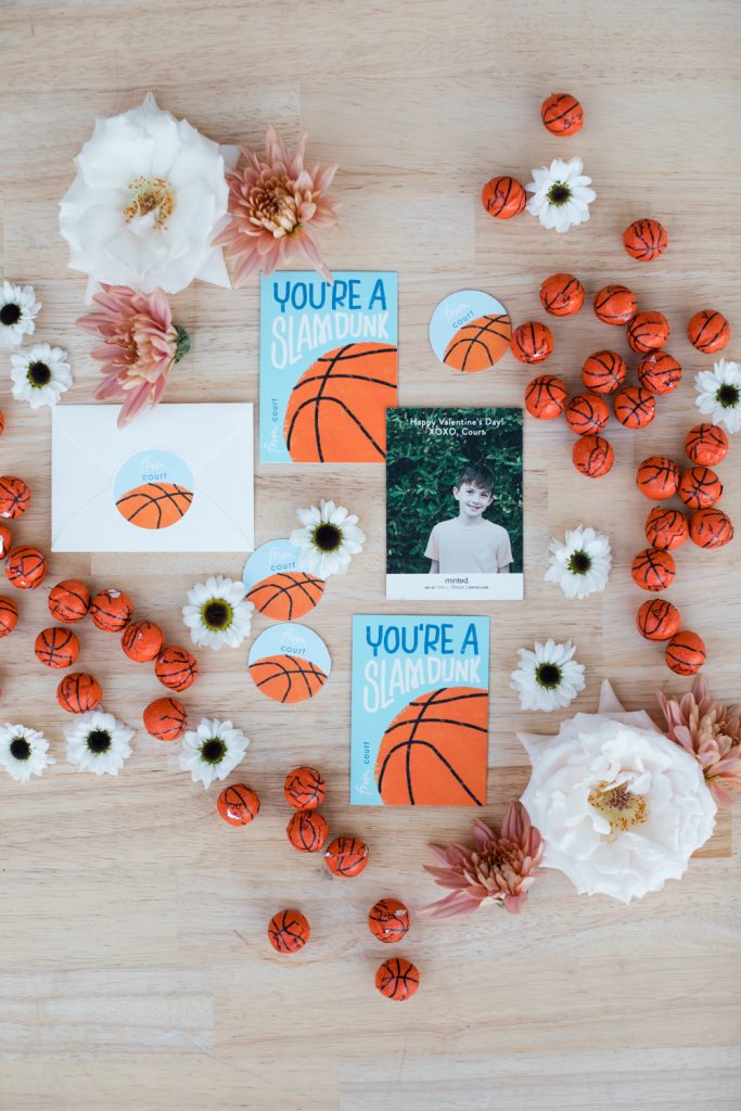 Court is in 2nd grade this year and living his best life! He loves his classmates and his teacher even told me that she thinks he should run for president… like of the country, haha!! Well, he is our sports fanatic and loves playing multiple sports at a time. It has me running around quite a bit! Currently he’s obsessed with basketball so these basketball cards couldn’t be more perfect. They were a slam dunk for him and the chocolate basketballs will definitely be a win with his friends. Like Cruz’s card I added a photo of him on the back and I love customizing those adorable stickers. I can’t wait for him to pass these out!