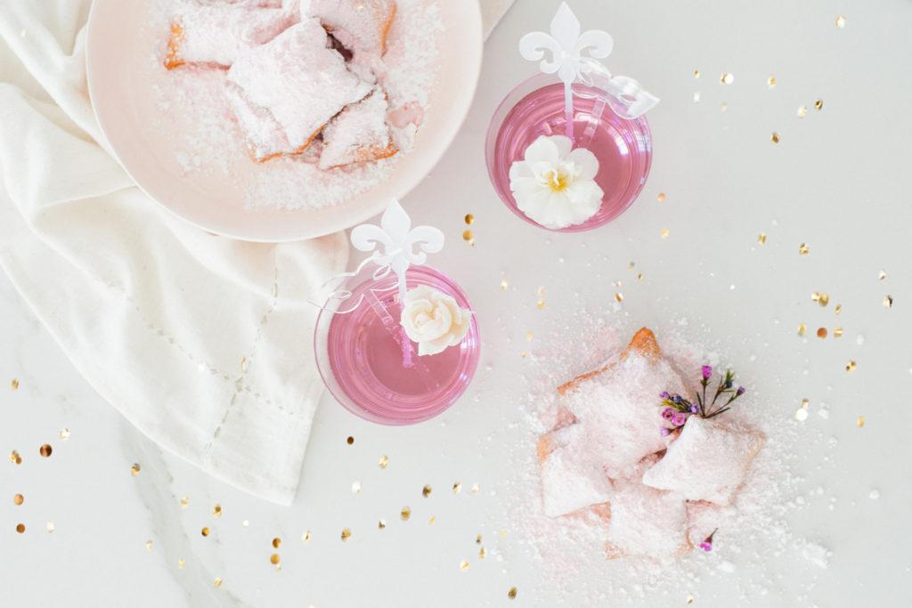 Beignets. All-day. Breakfast, lunch, dinner, or just even a snack. These heavenly fried goodies are probably the best thing ever. Toss out whatever new year diet you are on right now, and be ready to dominate these. Alongside is a fun cocktail cause we don’t make coffee over here, and it’s Mardi Gras!