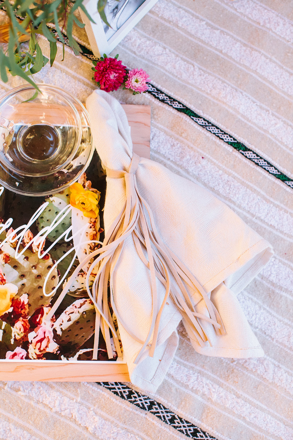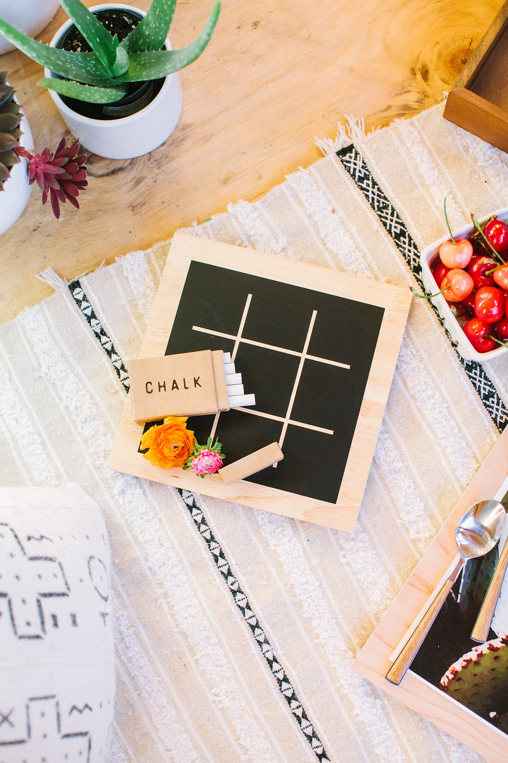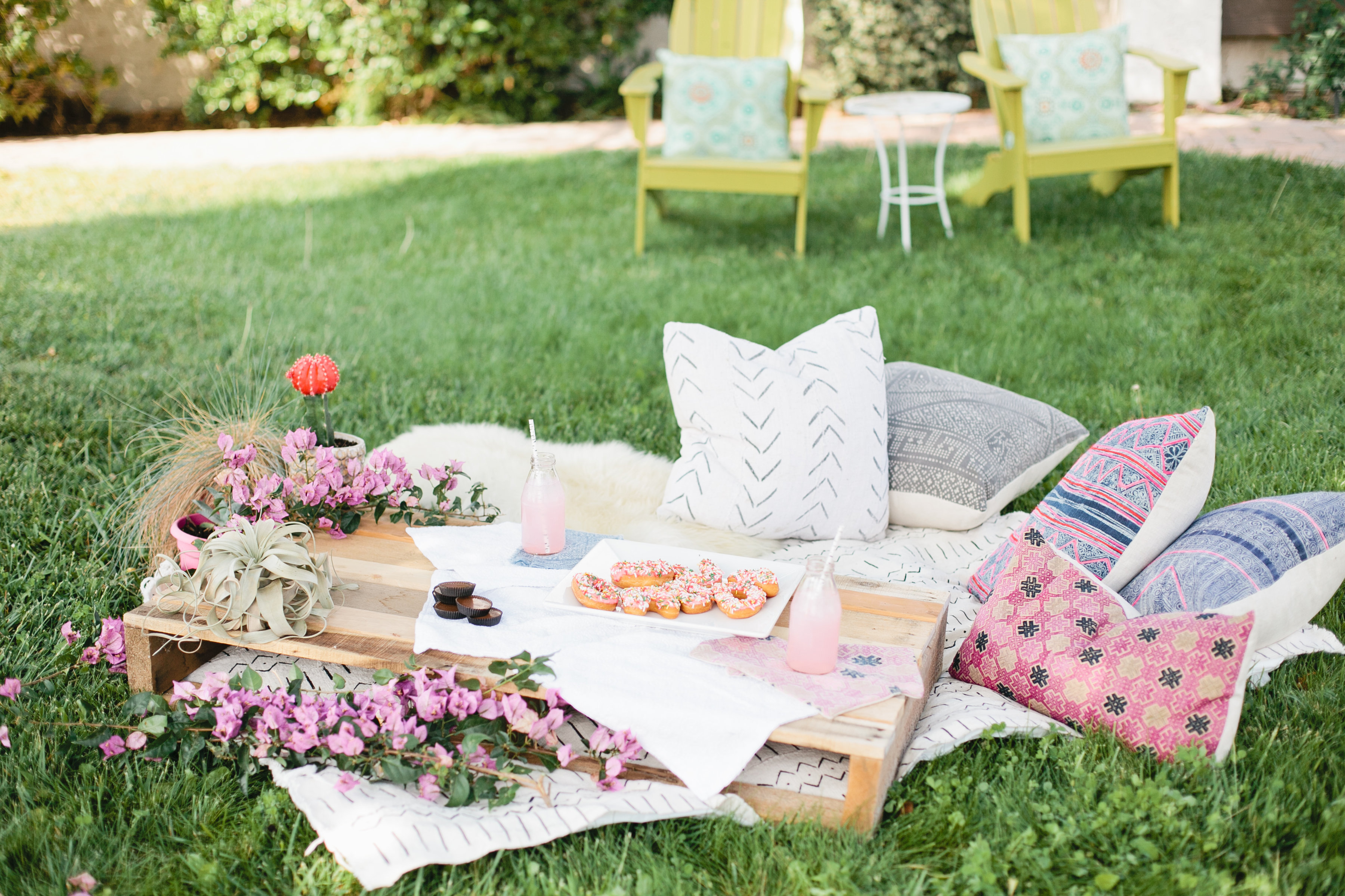 It was very simple, I got my fave blanket and pillow collection from Boho Pillow and laid it out for them to have a little picnic. The hubby made this nifty little wood palate that I just love for special spontaneous dates like this.