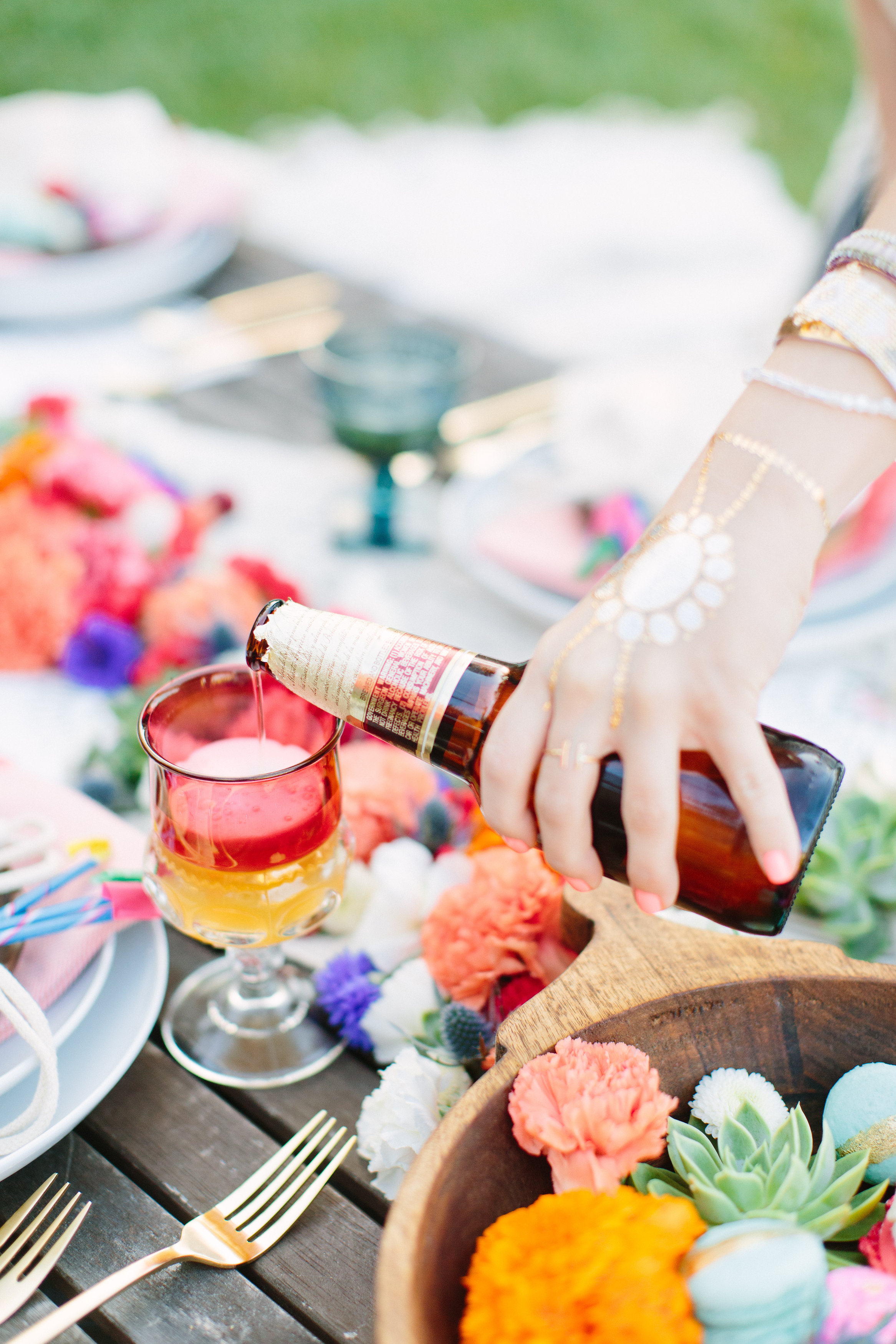 When thinking about how I wanted to design the table, I wanted to do create a table scape that wasn’t the traditional red, white, and blue theme. Sometimes it can look… well corny. Adding the Beijos touch, we created a fun colorful table setting that will have your friends wanting to stay all night.