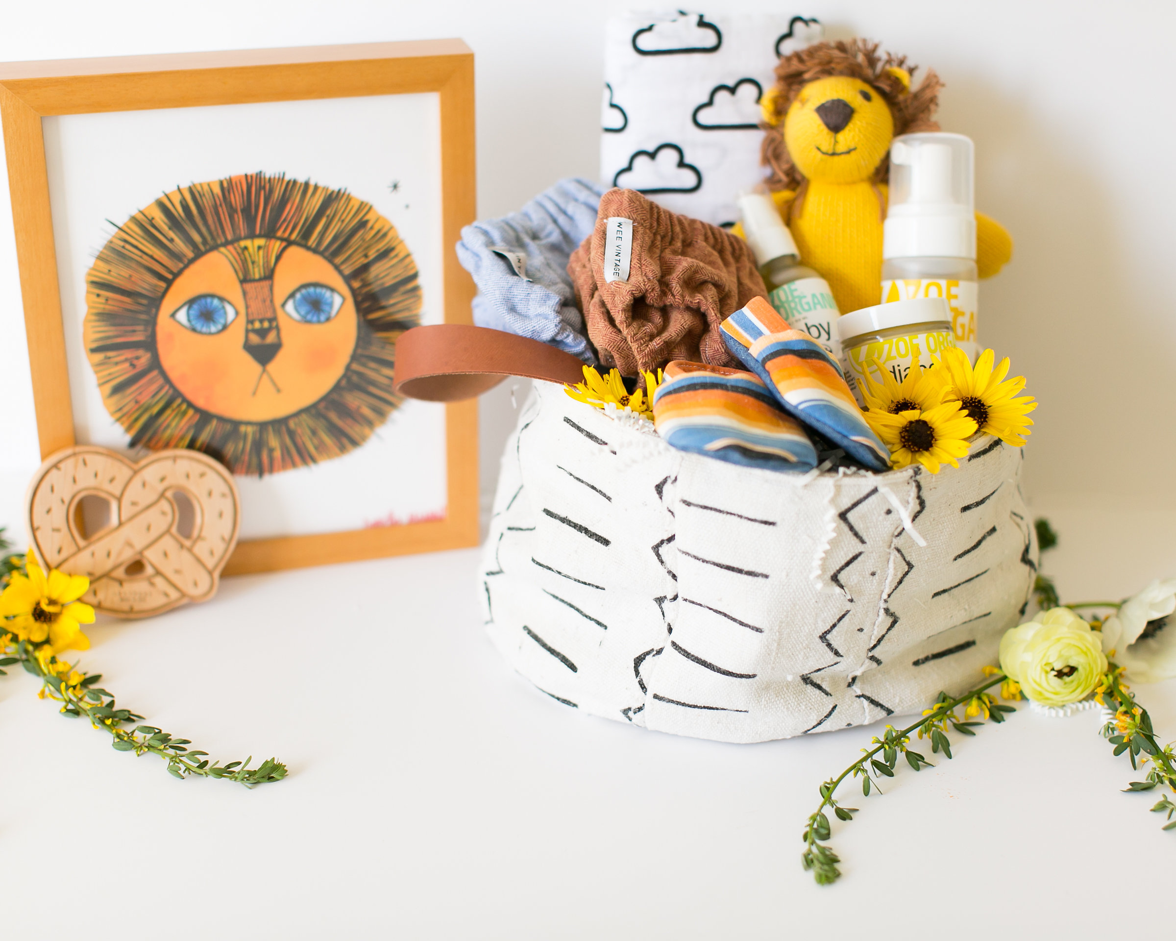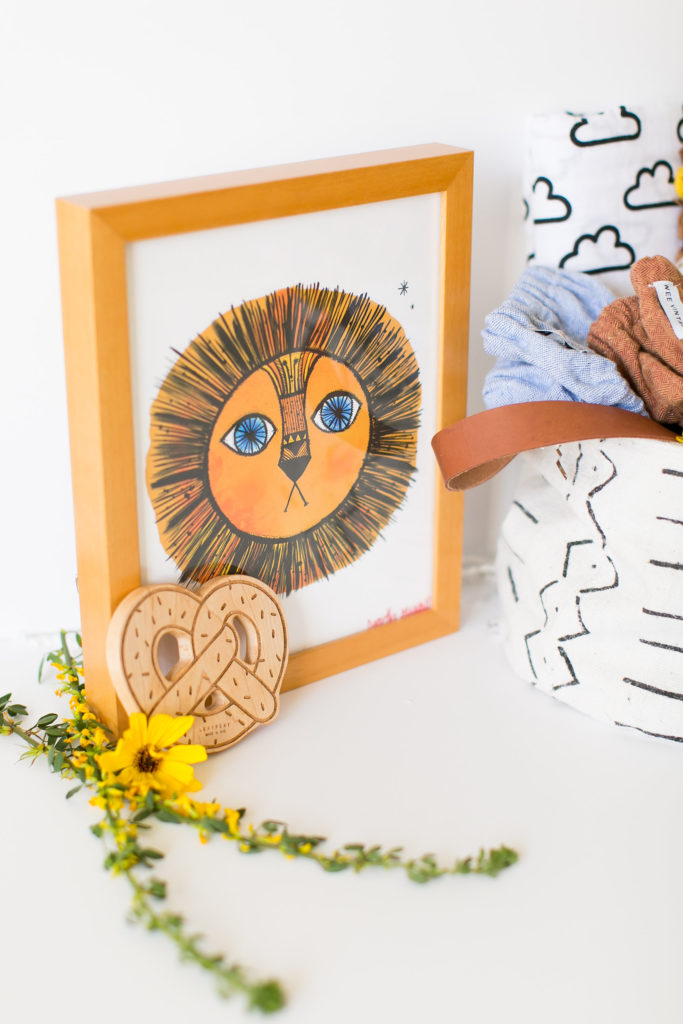 Let’s talk about some of my baby Easter picks!  I went with a sort of Lion theme after being inspired by the cutest art piece by my favorite Daniella Manini.  That lion art would look adorable in any kid’s room!  And when I saw the sweet little hand knit lion doll from The Little Market I knew that was where I wanted to go!  Now, every baby needs a good swaddle and Modern Burlap’s are the best.  I love the cloud one because it is cute for both a boy and a girl!