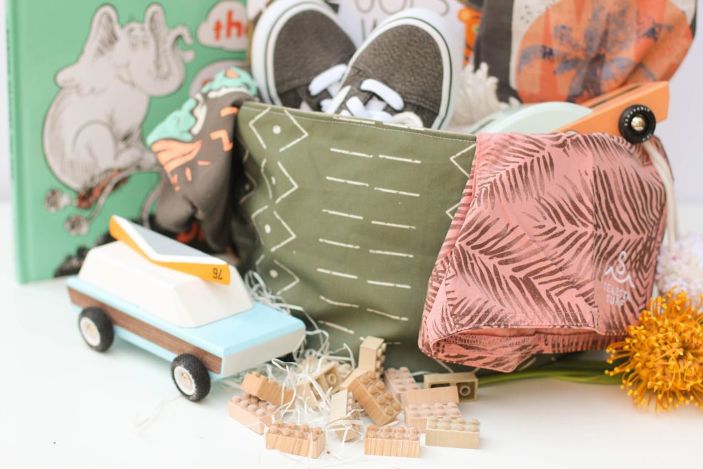 Last up we’ve got the big boy basket that Abby curated for her son Jett!  This basket by Boho Pillow might be my favorite, I love the olive color!  I could definitely see this being used in any home because it’s really such a neutral color!  But my first thought for a boy… Lego storage!!!