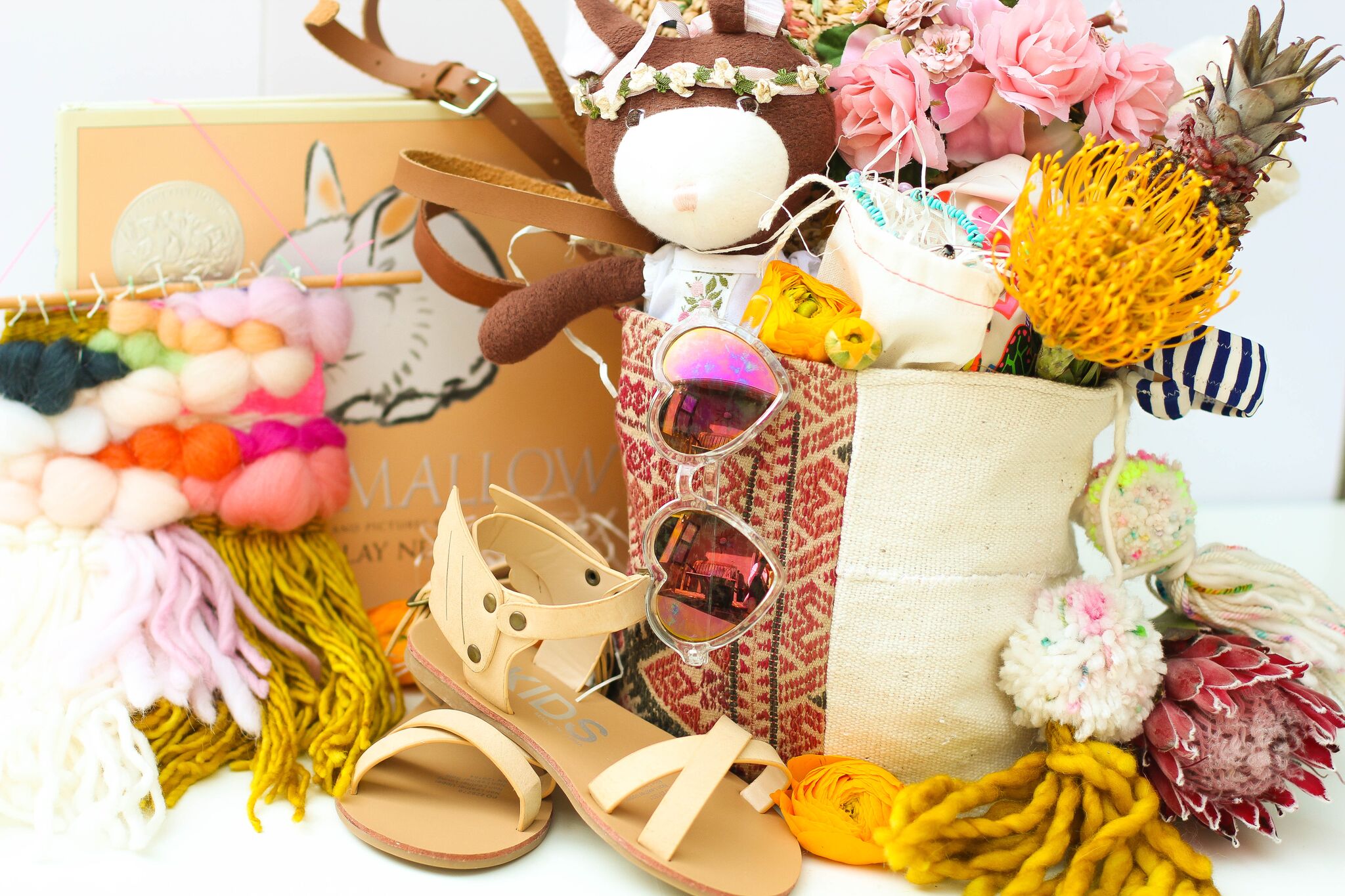Another thing we try to do is find unique baskets, and I think this year’s are the best yet!  We asked our dear friend and soul sister Monica of Boho Pillow to create some boho-dreamy baskets…. And boy did she come through!  Check them out below!!  For more baskets, and just overall amazing stuff, head to her site here!!