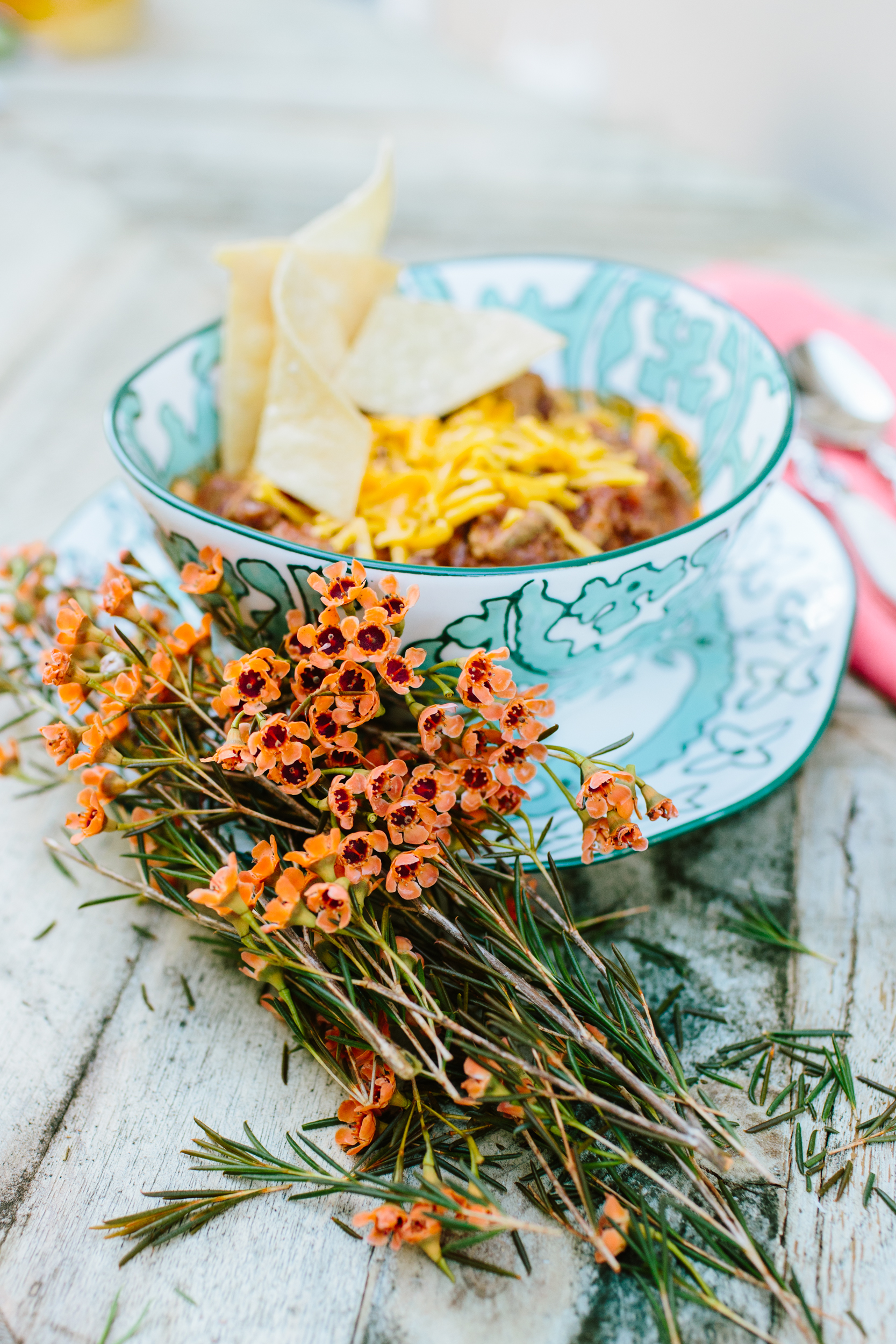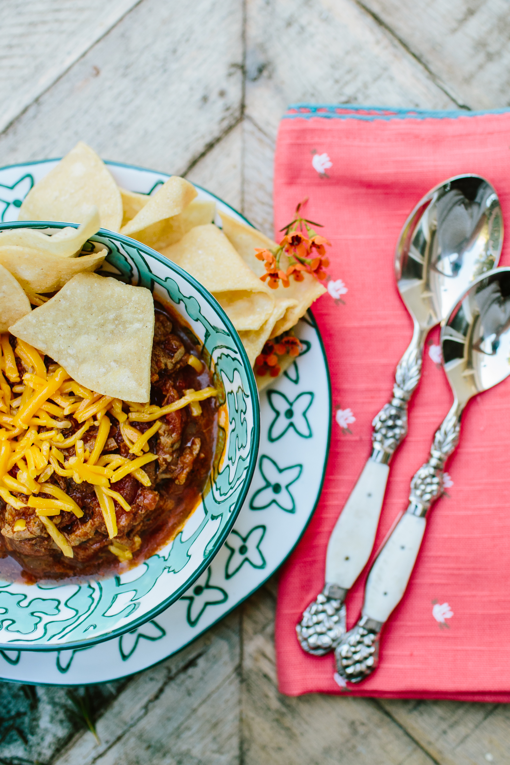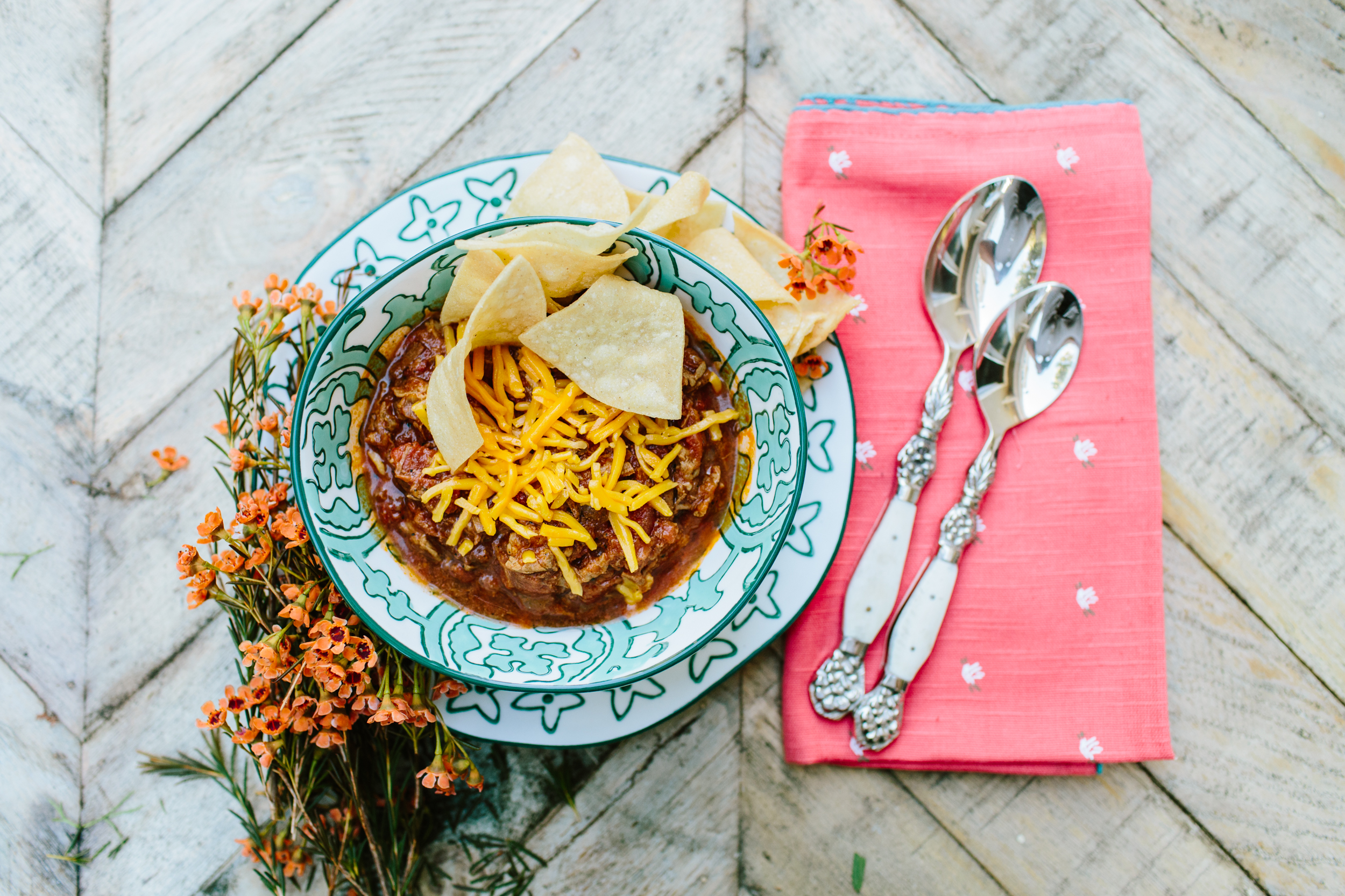 We are right back at it, checking off our to do’s on our Beijos Fall list. This one is extra good…who doesn’t like a cozy bowl of chili to fill that tummy?? Chili brings so many good memories to mind, but for me it’s mainly football. Whether your at someones house watching the game or tailgating with friends. A good bowl of chili is an essential when the words football and party combine. Especially on a nice crisp Fall day. If you make a good chili, it’s definitely something you are proud of and since there are so many variations of recipes I thought I would share the one I call the best. This is a beef chili with no beans, it’s super delish and not too bad for you since it’s a lot of protein!