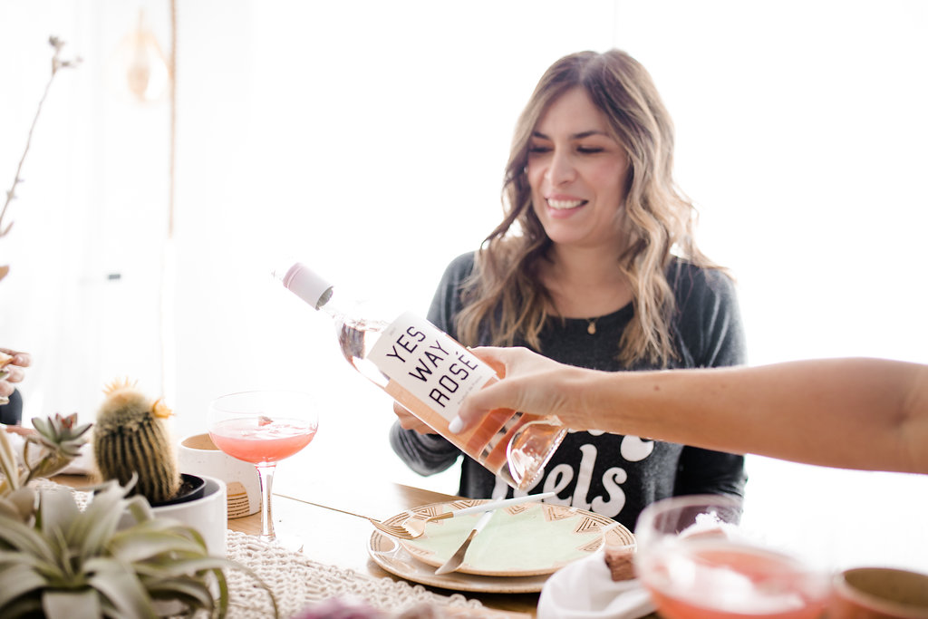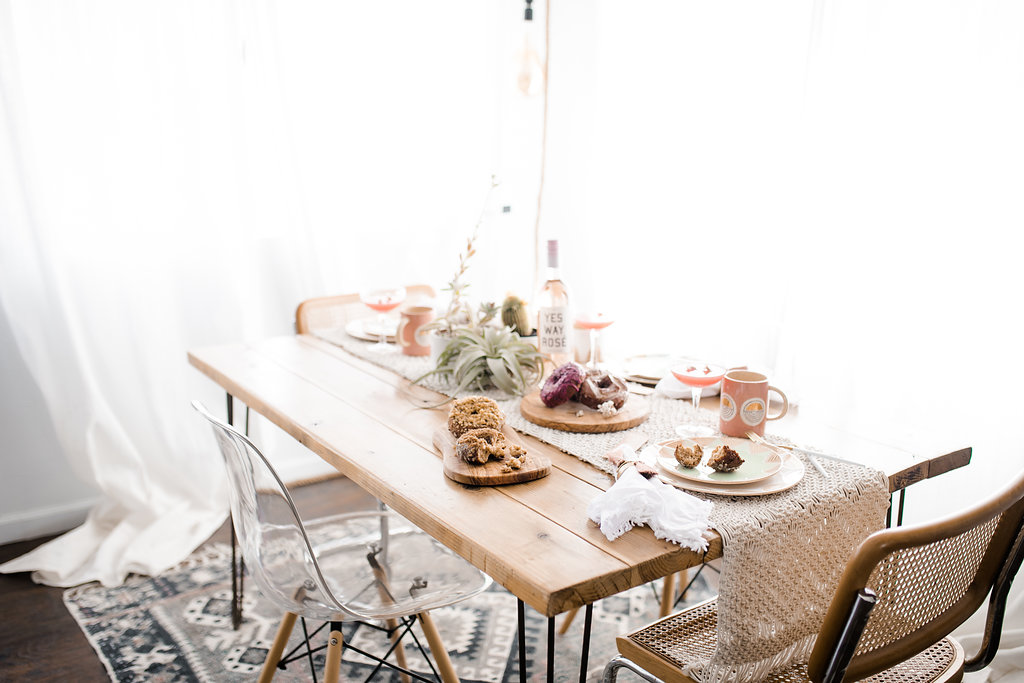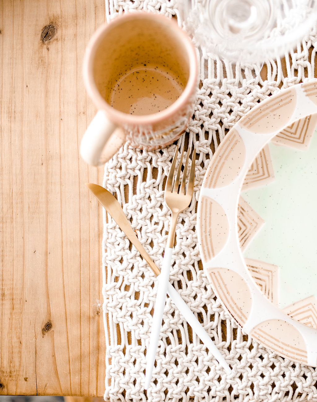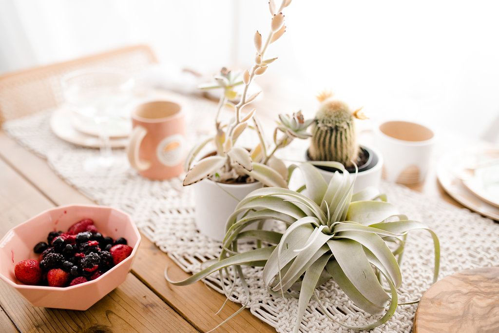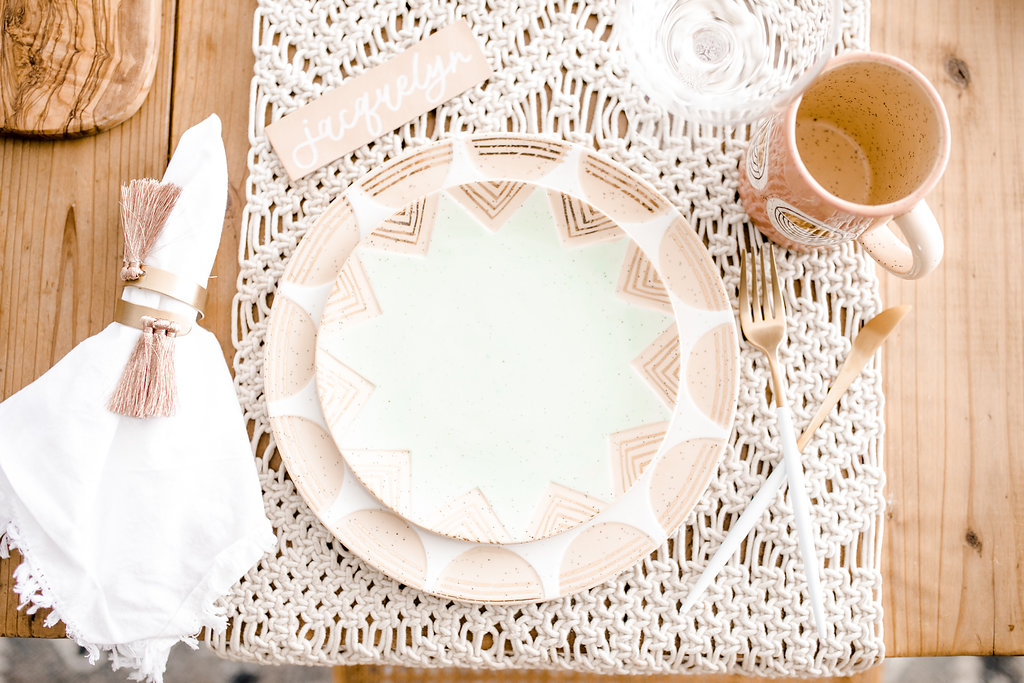 Love all of this pretty with the tabletop from Anthropologie, leather place cards from Poppy Jack Shop and simple air plants and succulents from home! We’re all wearing our comfy Chaser tees and shorts with our cozy Aussie Merino slippers.