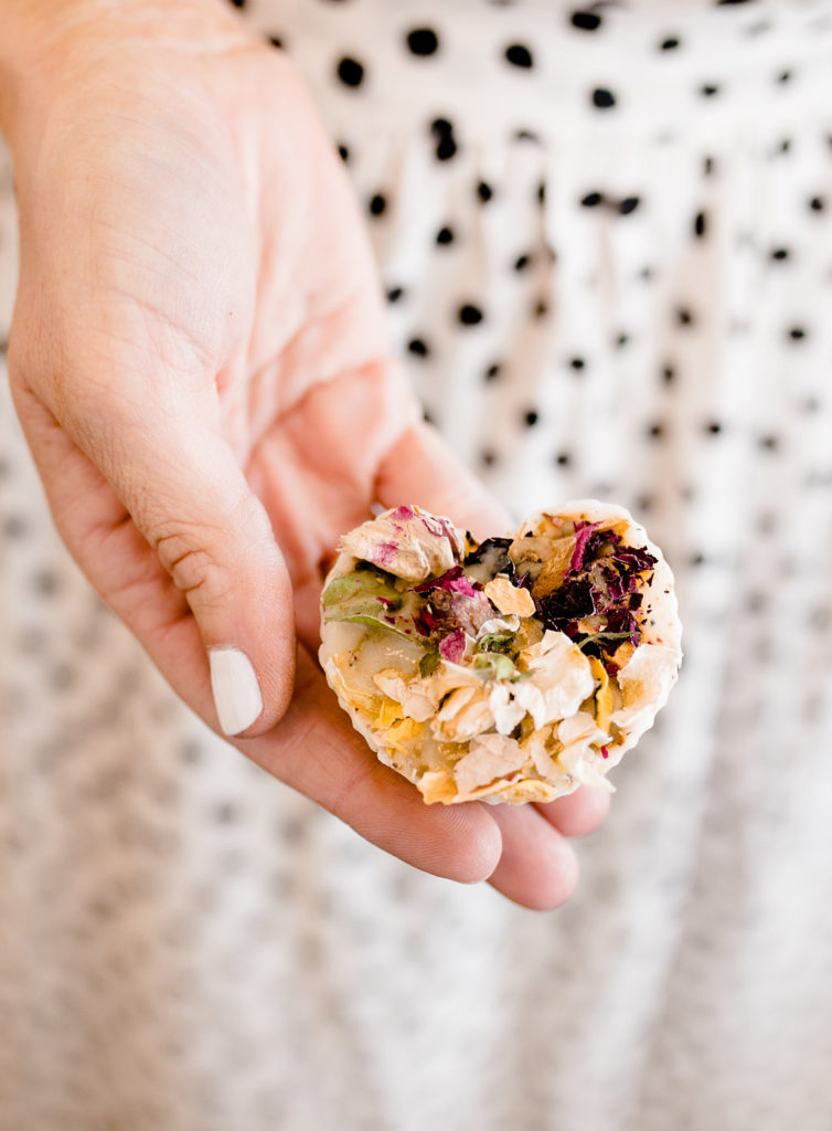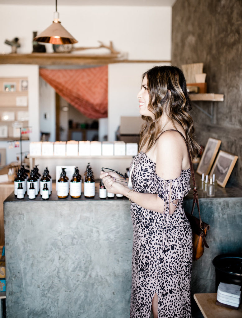 There are tons of hidden gems inside the shop. The cutest vintage clothing, beautiful geodes and amazing bath and body goods. Like this gorgeous dried floral soap I’m holding below…