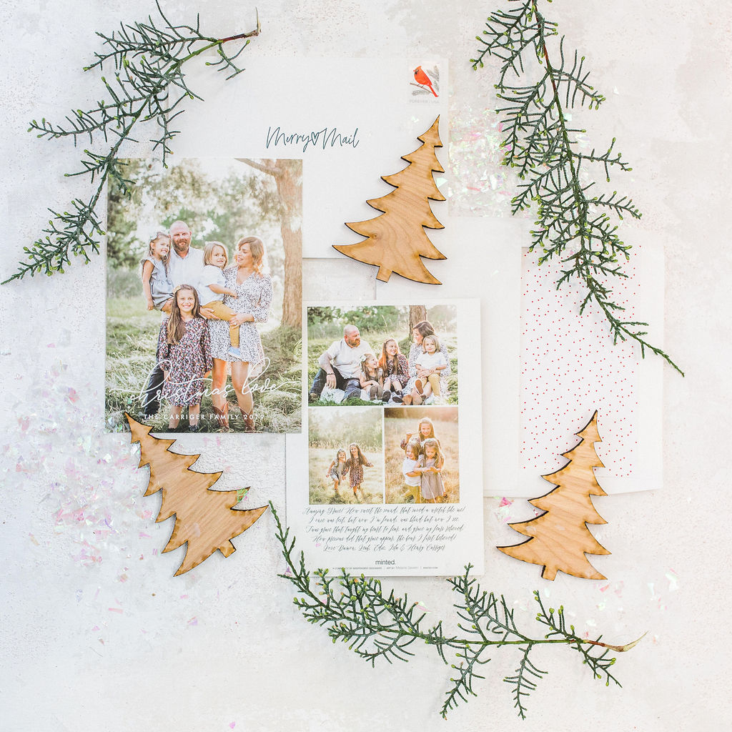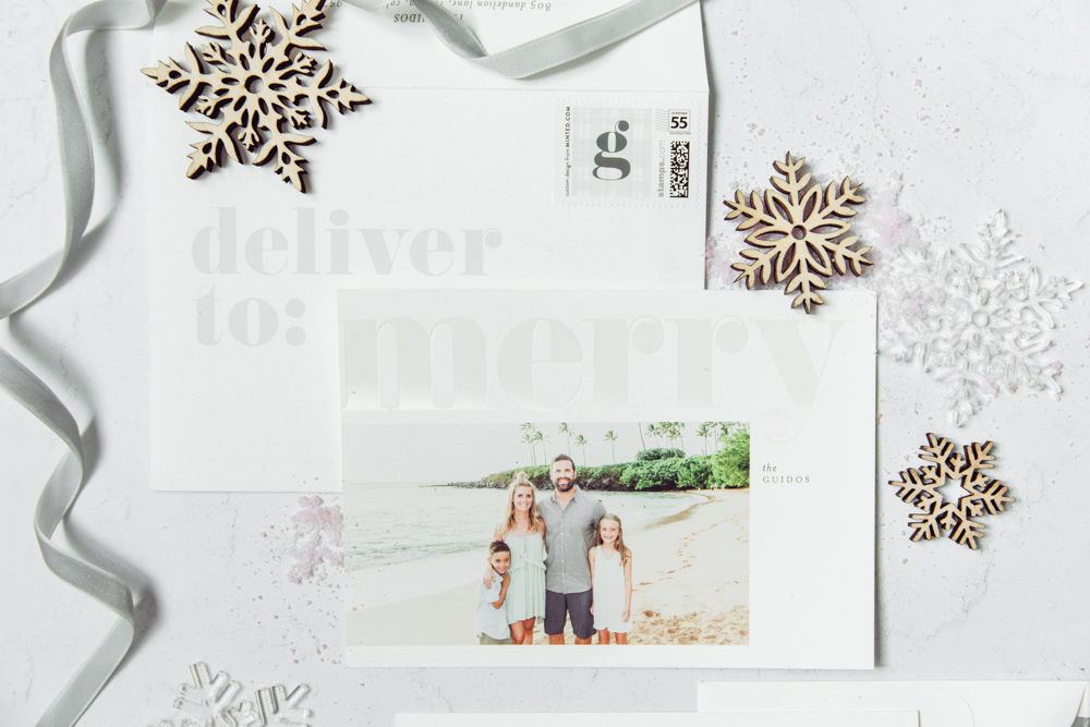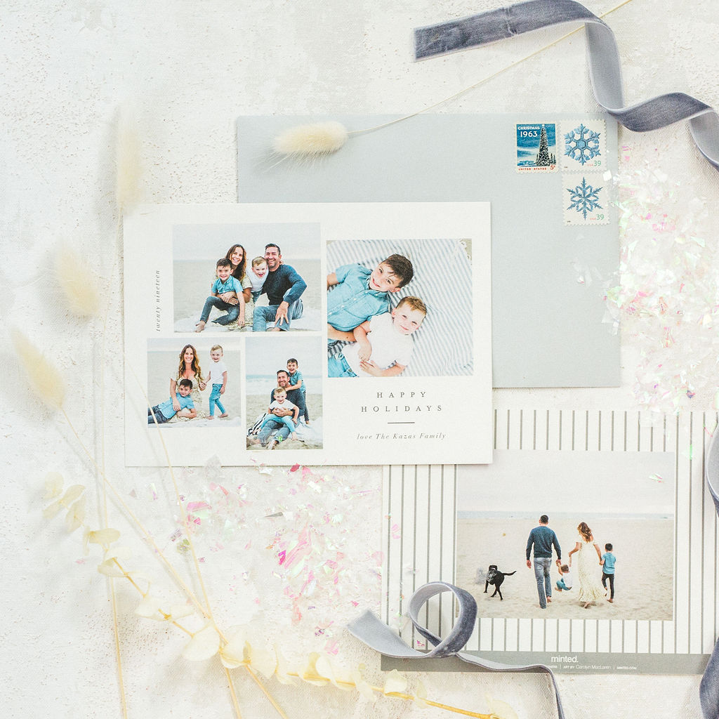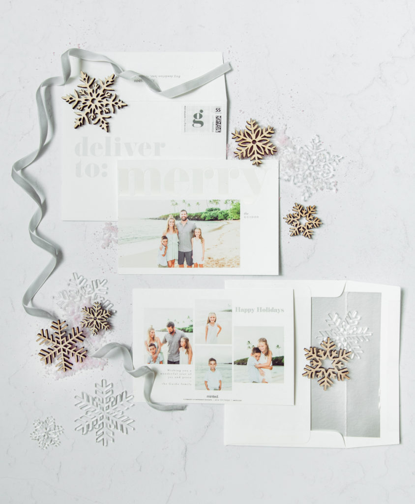 Every year they come up with new ways to make your cards special, this year included white address printing on envelopes and a fun red foil color! We also love how extremely easy they make it for us – for example, did you know you can text your photo to Minted’s free styling service and they will give you the 5 of the most perfect card options for your photo?!