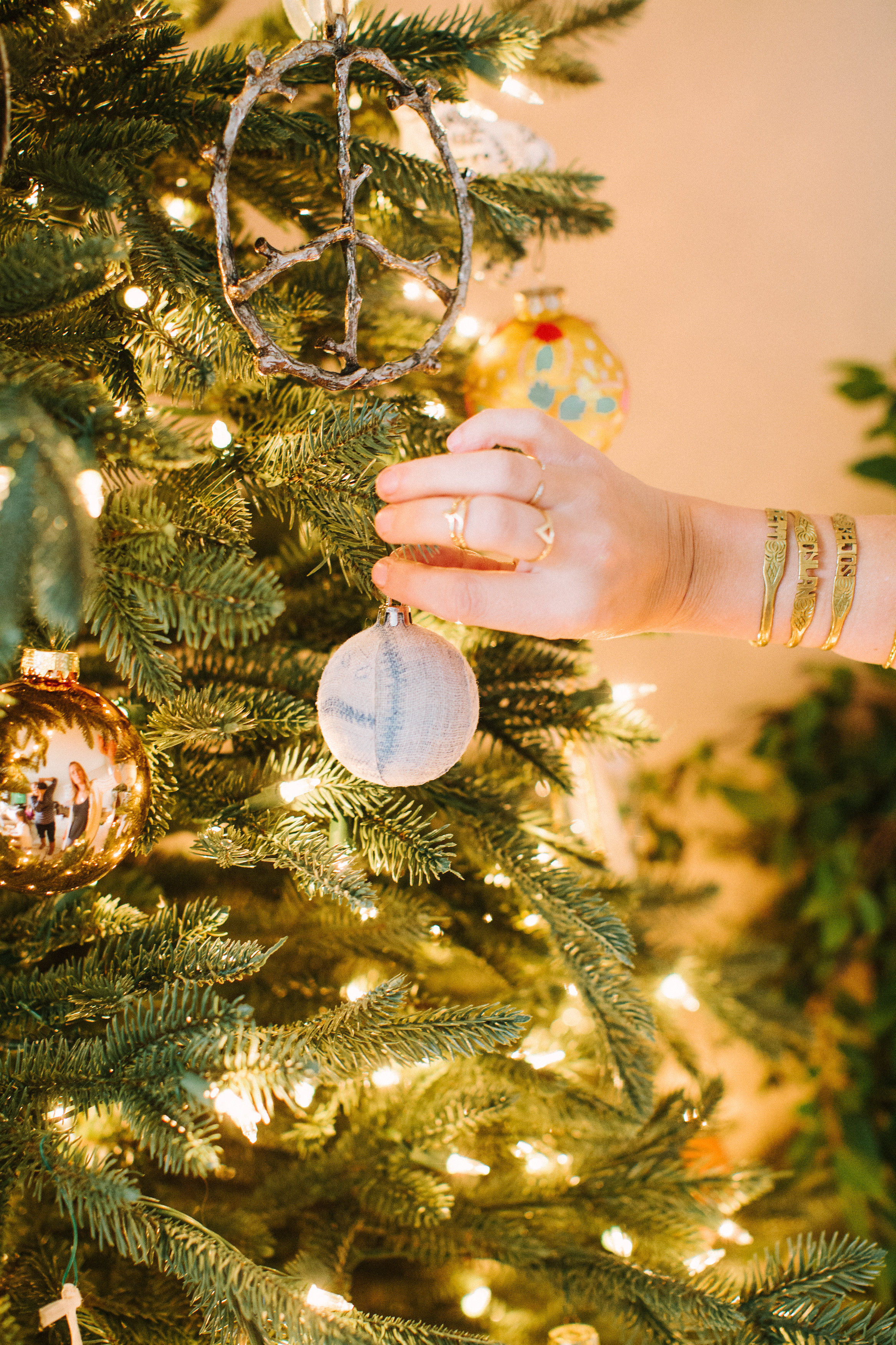 This year, I invited two of my good pals to help me with trimming the tree + mantle. Meet Monica! She is our Textile dealer. Her textiles are like a Where’s Waldo in our shoots. Can you find her textiles in all our shoots + homes? This year, we had to get our hands on her ornaments and tree skirt. When something matches your family room, its a must!