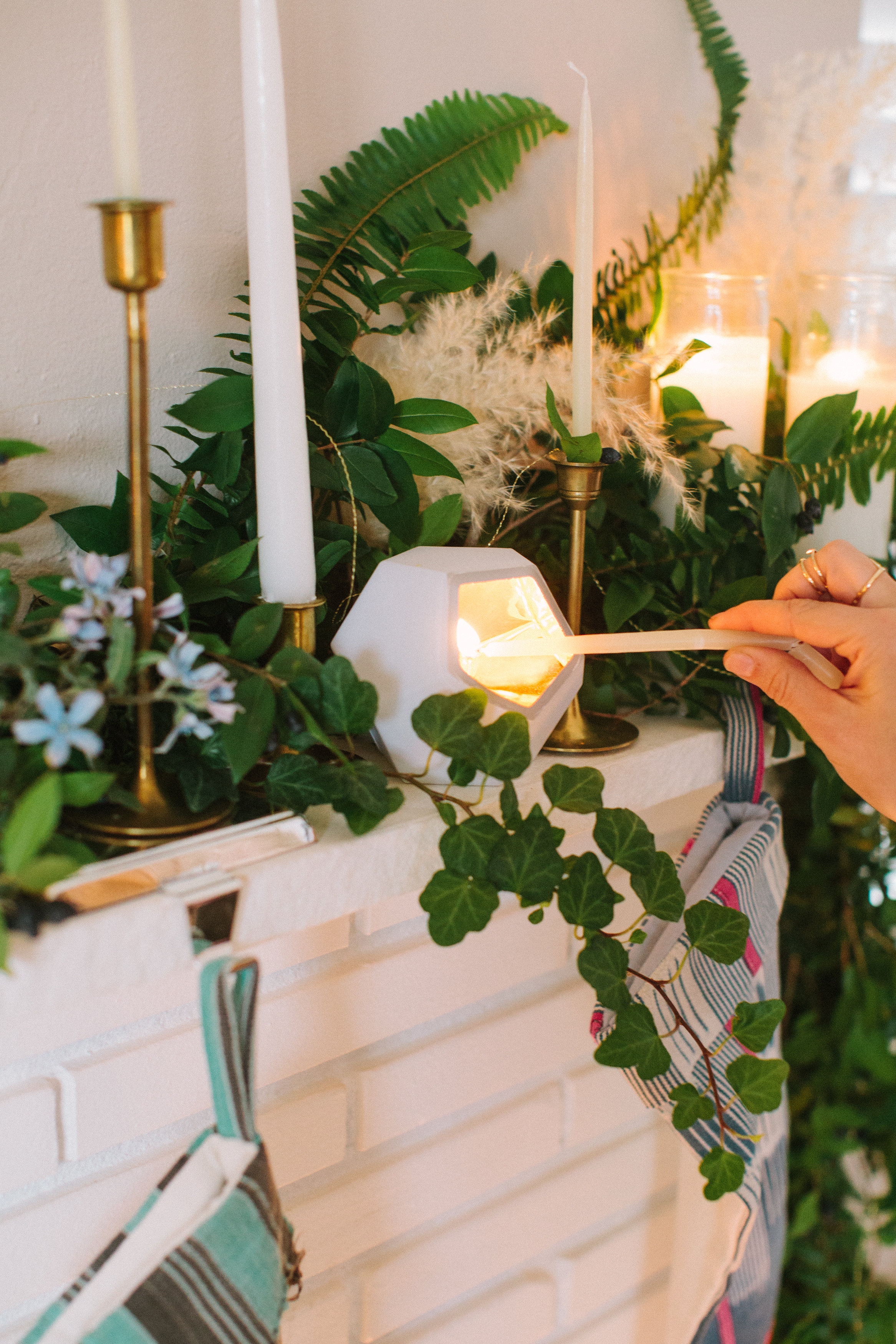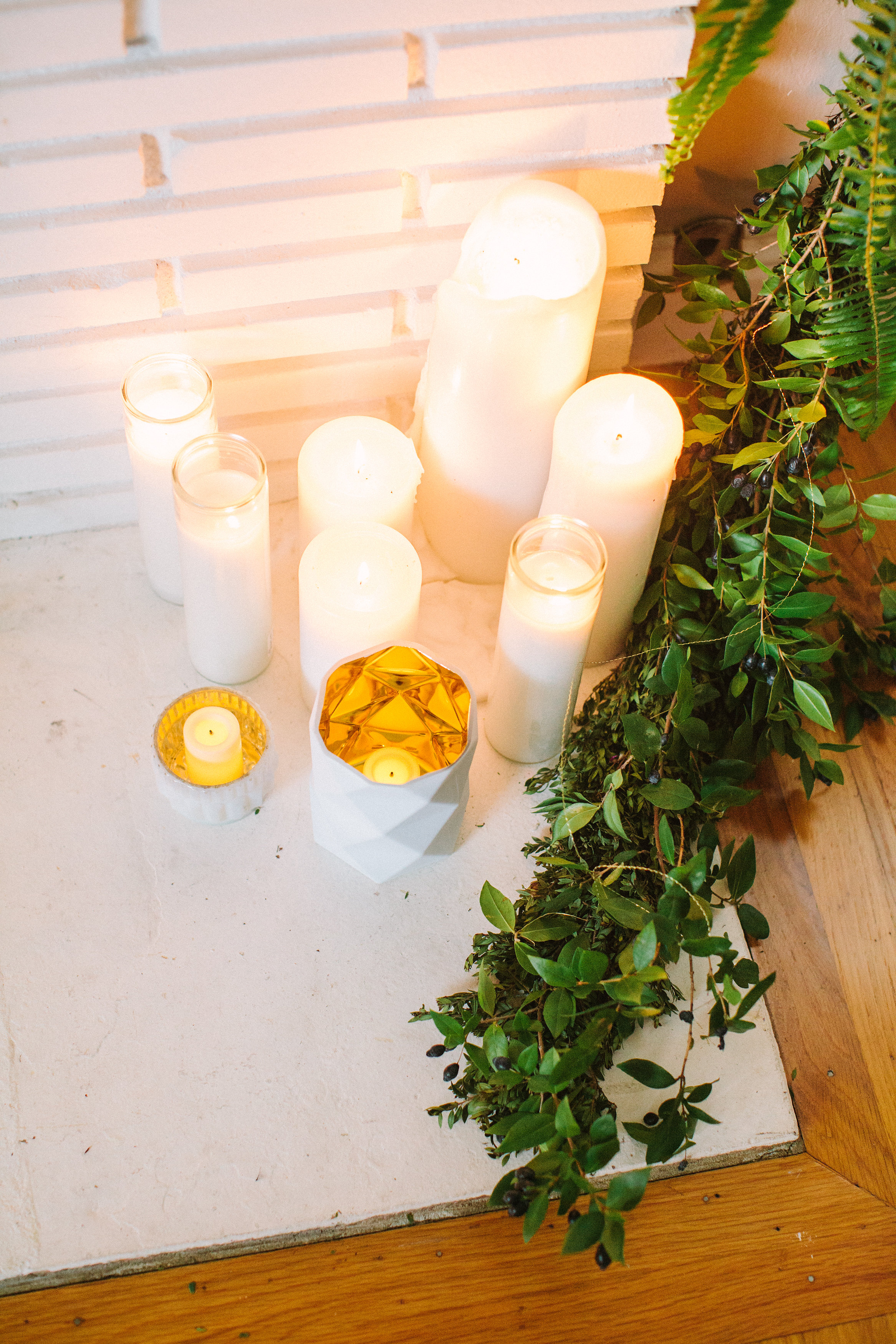 Pillar and taper candles to warm the mantle and fireplace with candle light!