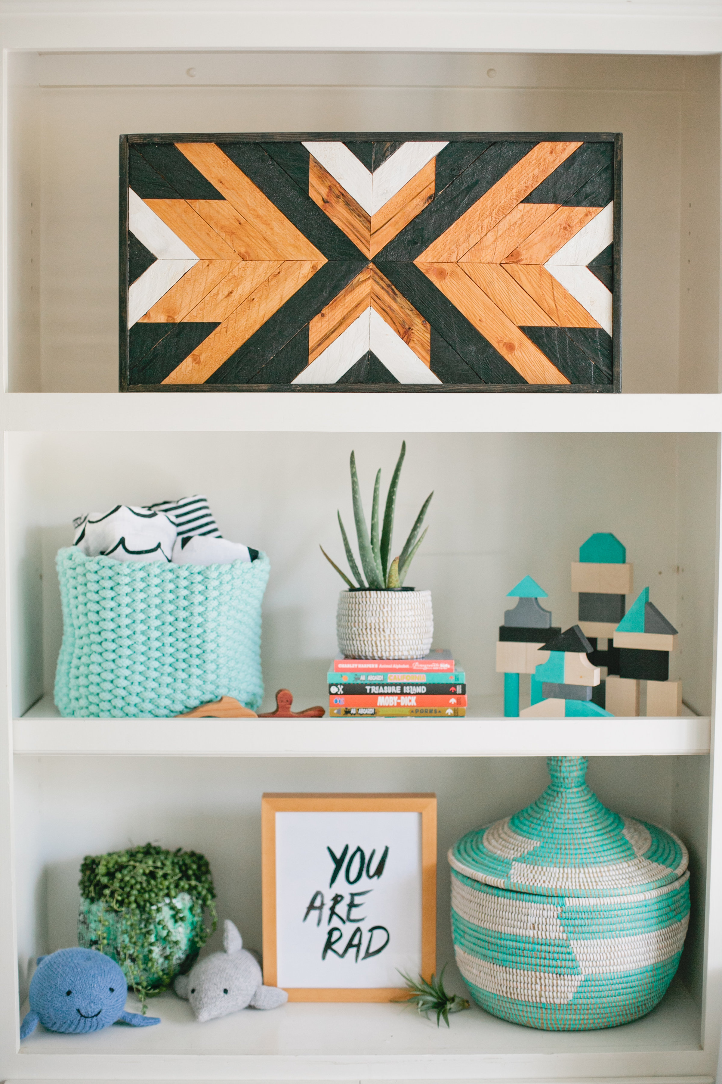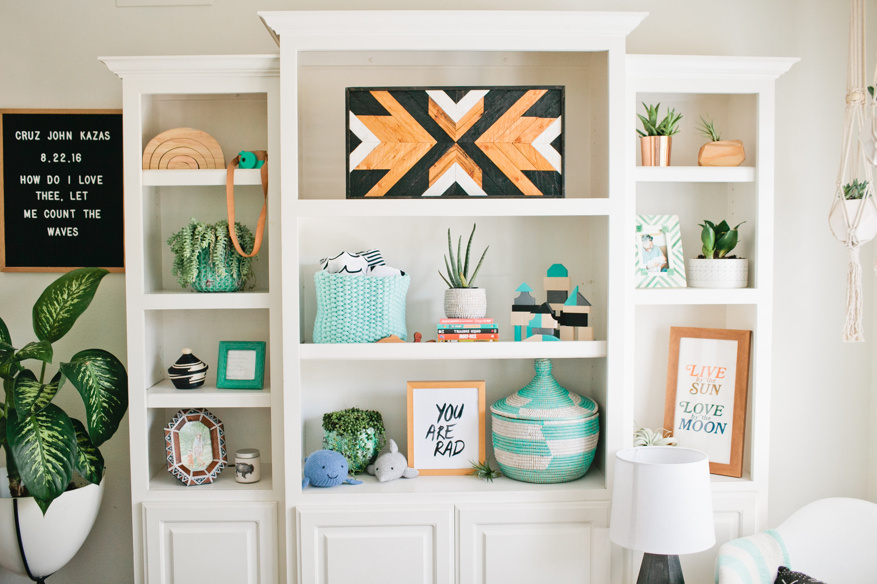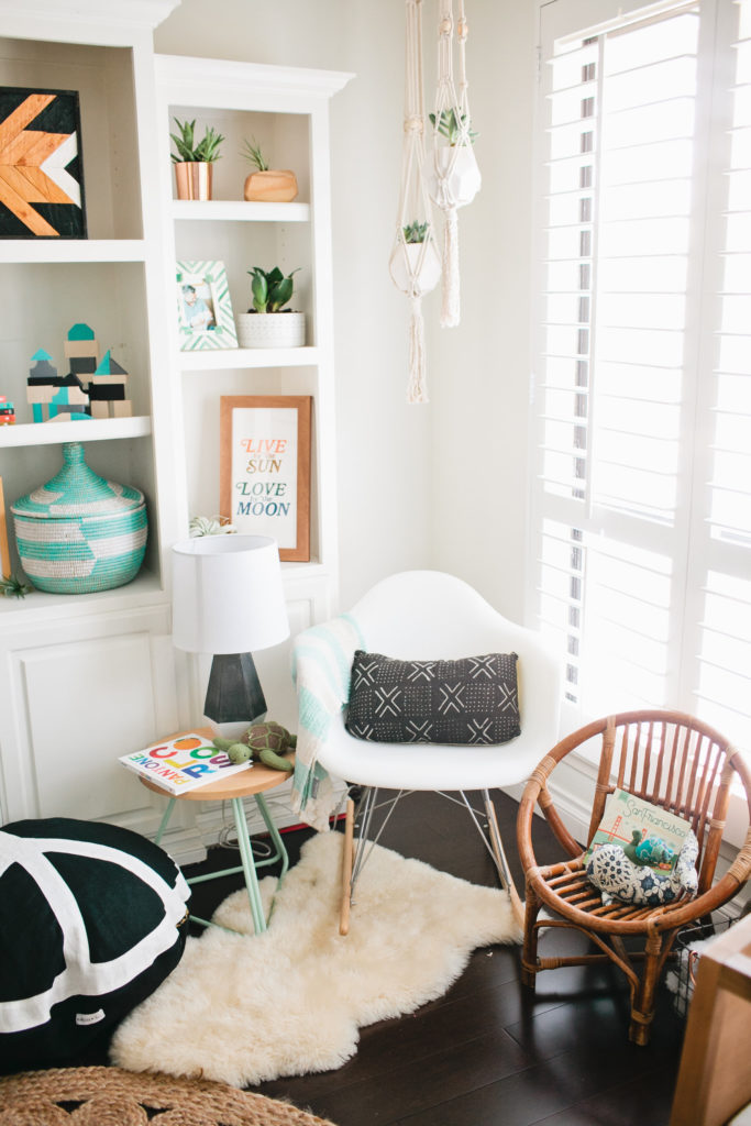 Something else essential to me was making Cruz’s room a sanctuary for my whole family.  It was important for me to make Court feel comfortable in the room as well and not have him feel left out in any way.  Becoming a big brother was a big transition for him and I recognize that.  I added a little area for him to be able to sit and play while I nursed Cruz in the rocker, I also have blocks in there for him to play with as well which he loves!  Obviously Cruz can use all of these things eventually when he’s older.  Lastly, I loved adding live plants to his room, I kind of got carried away adding plant after plant but I love the look and feel it adds to the room.  It’s nice having something that adds color and life to a room.