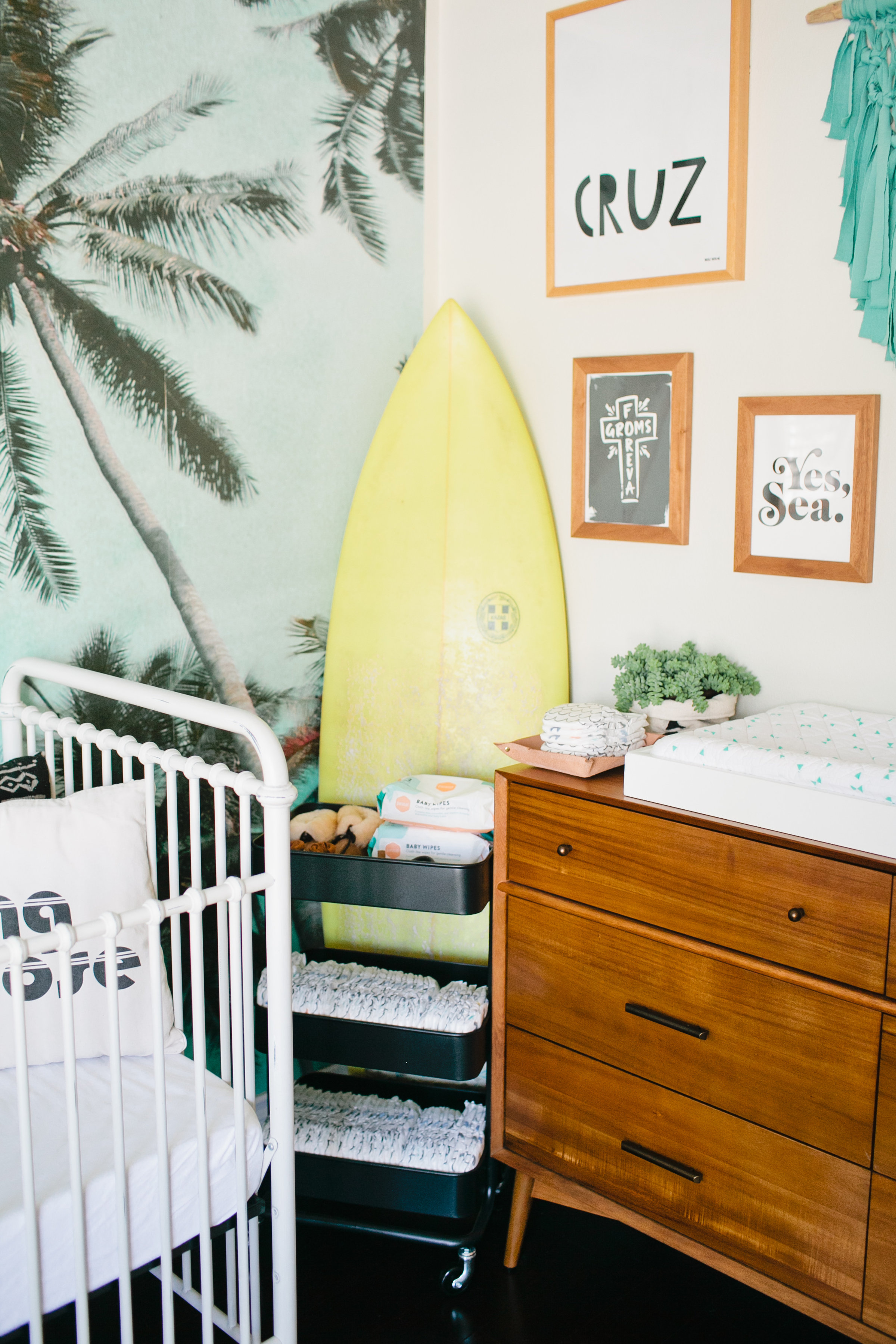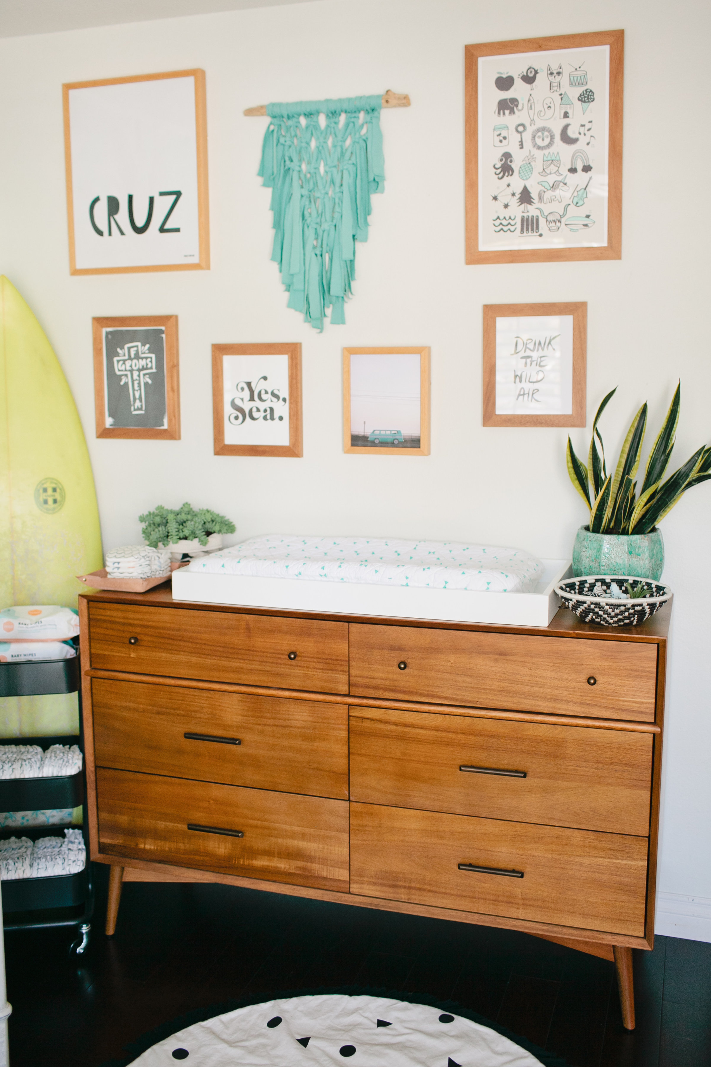 I also definitely wanted a good gallery wall, and had a few vendors in mind for it!  I love Daniella Manini’s amazing creations, she is such a talented artist.  I used quite a few of her prints in Cruz’s room, they have the perfect mix of a modern and beachy feel that I love.