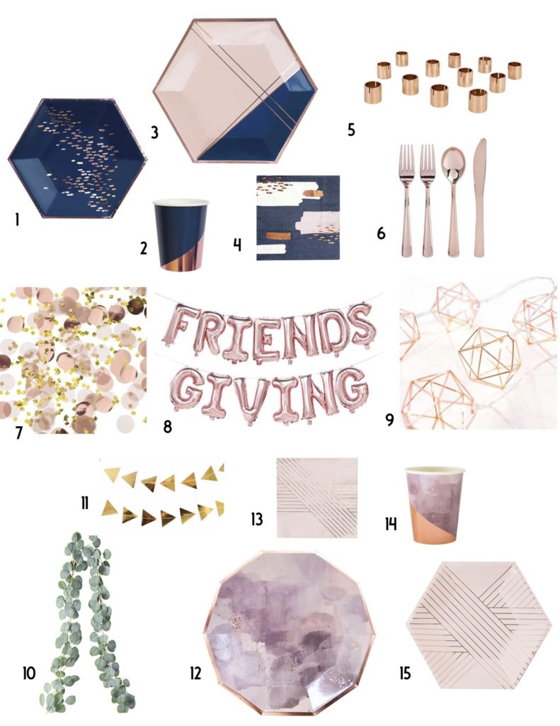 Here are two ideas for tableware and both will work with all of the accessories we chose! Think rose gold – and it can go a little more masculine or a bit more feminine.